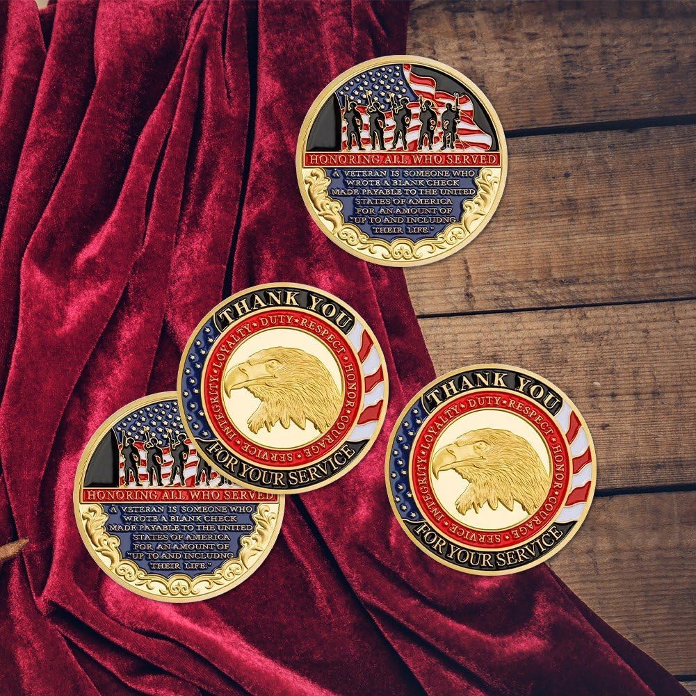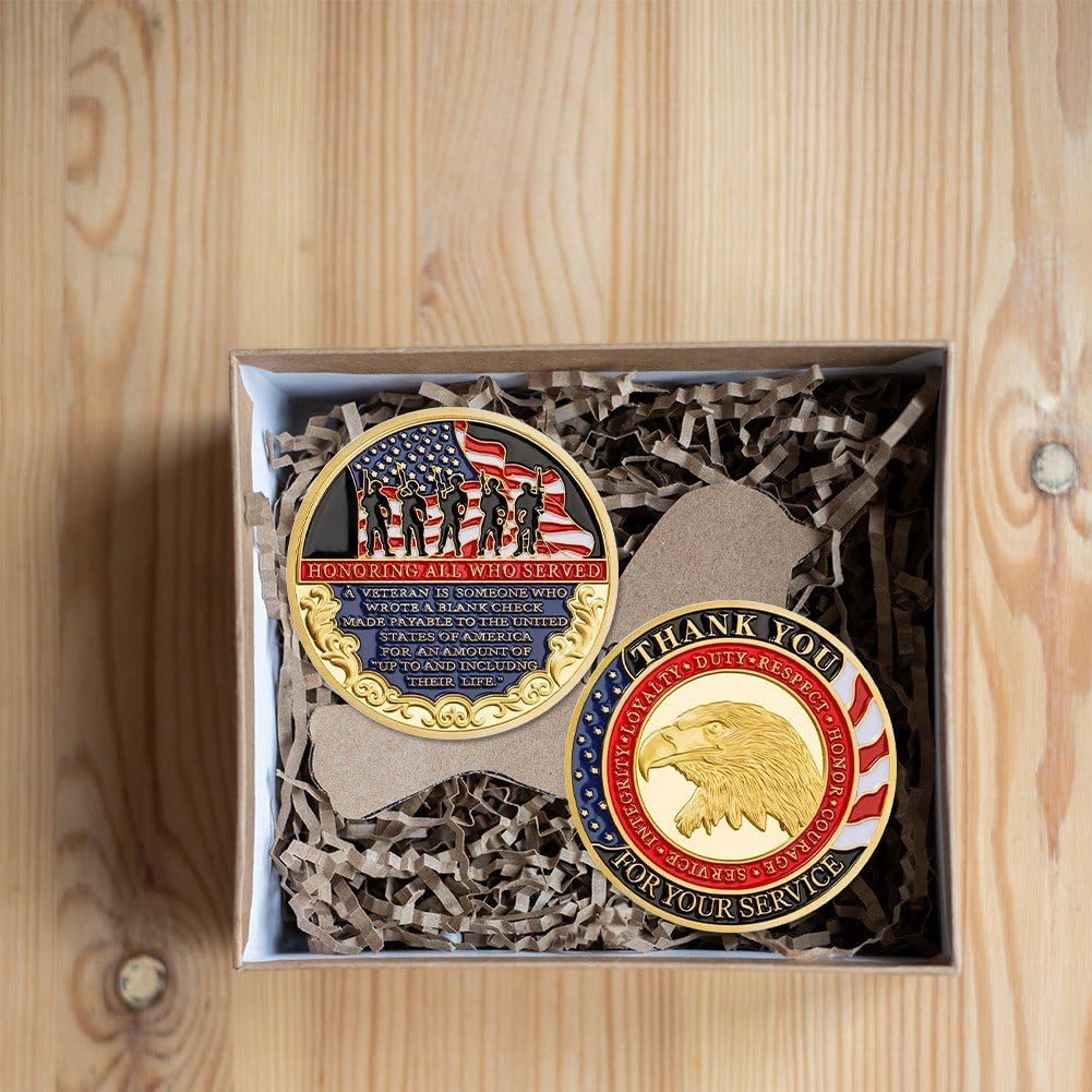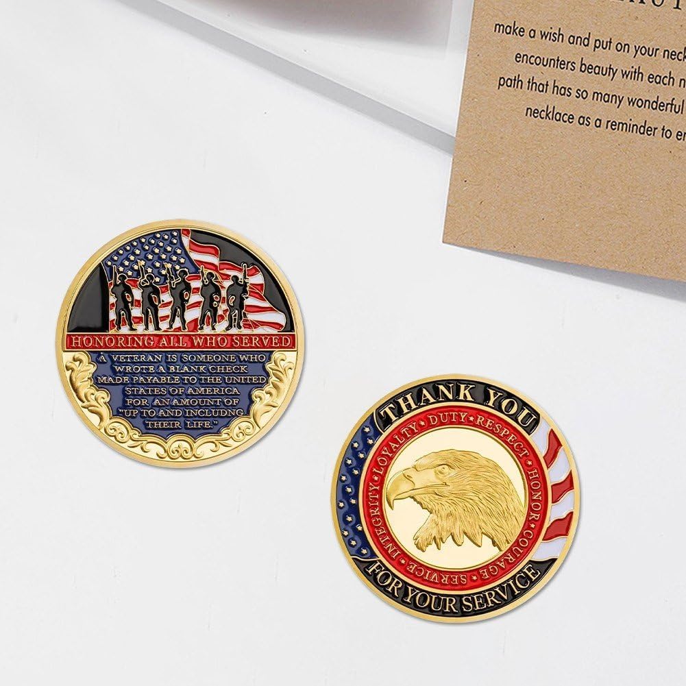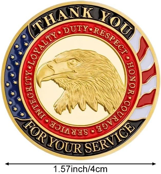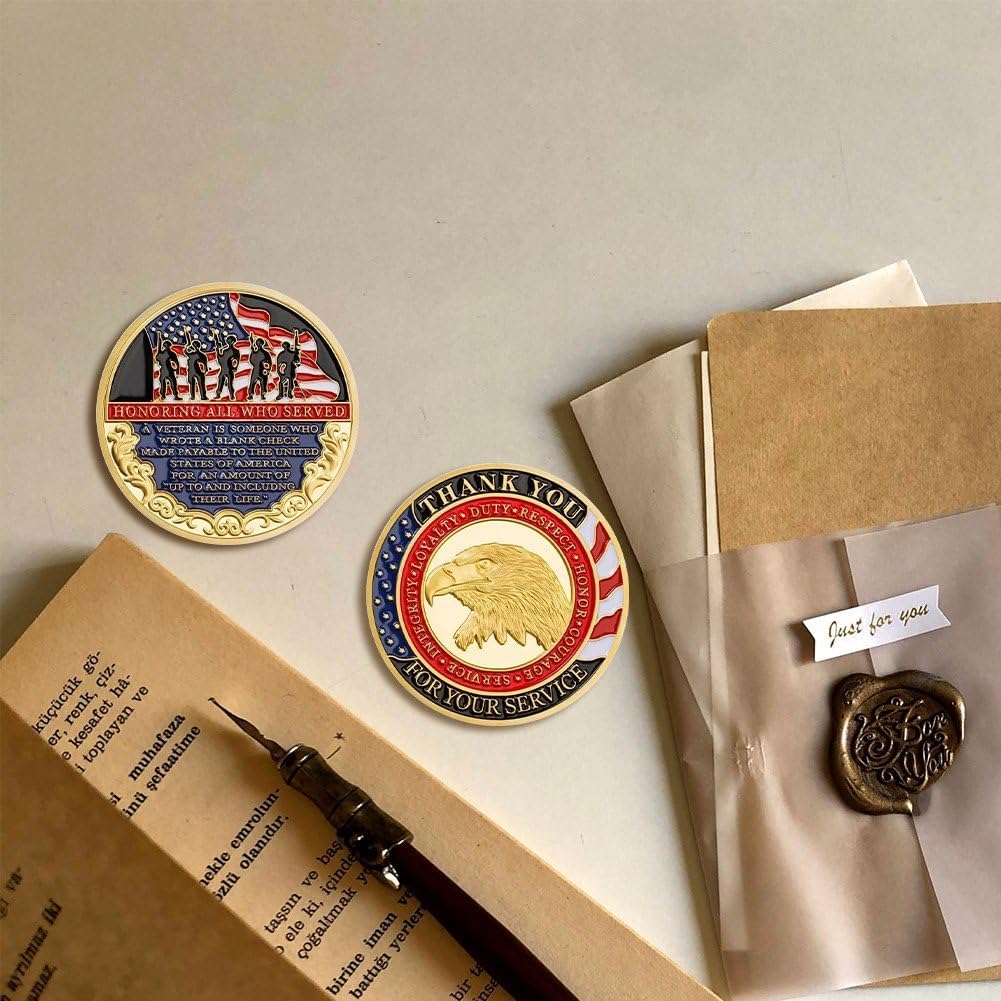 Tributo ramo militare: presenta motivi iconici degli Stati Uniti, rendendolo un ricordo significativo per veterani, personale in servizio attivo o appassionati militari. Design autentico della moneta sfida: realizzata per rispecchiare lo standard classico della moneta sfida: robusta, dettagliata e con una finitura lucida che cattura dignità della tradizione militare, ideale per scambi formali di monete sfida o per l'esposizione. Estetica degna di essere esposta: presenta incisioni intricate che rendono adatta per essere esposta in portamonete, scrivanie o scaffali, fungendo anche pezzo decorativo che dimostra l'orgoglio per il servizio militare degli Stati Uniti. Regalo e souvenir versatile: perfetto come regalo per familiari di militari, pensionati o amici patrioti; funziona anche come souvenir unico per eventi militari, raduni di veterani o gite musei militari, con un sentimentale. Qualità collezione premium: realizzata in metallo durevole che resiste all'ossidazione e all'usura, garantendo che moneta mantenga i suoi dettagli nitidi e sua lucentezza per anni.