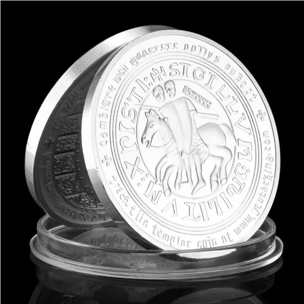 Monete Commemorative, Distintivo del Cavaliere Templare Rosso, Moneta Ricordo Placcata in Argento, Regalo da Collezione