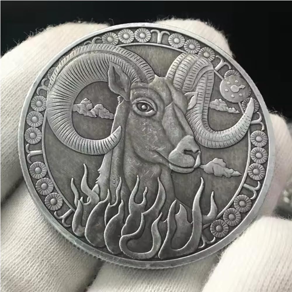 Monete Commemorative, Dodici Costellazioni dello Zodiaco, Placcate in Argento, Tarocchi, Ariete, Dio del Sole, Medaglie Portafortuna, Moneta Ricordo