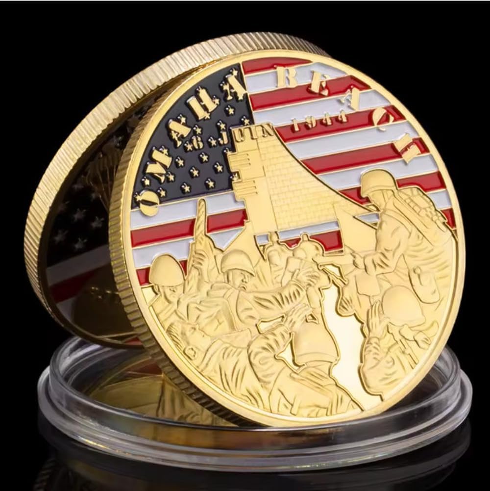 Monete Commemorative La Seconda Guerra Mondiale L'Invasione della Normandia Souvenir Omaha Beach Monete da Collezione Moneta da Sfida Placcata in Oro
