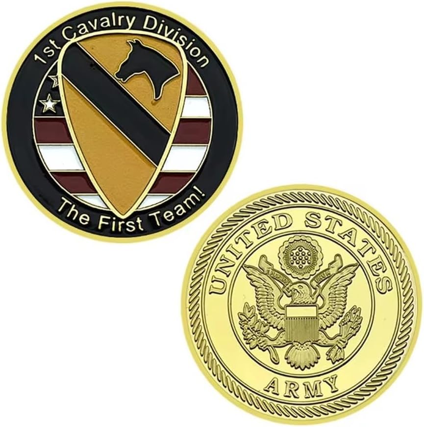 Monete Commemorative, Moneta della 1A Divisione di Cavalleria dell'Esercito Americano, Collezione di Monete da Sfida in Metallo Placcato Oro della Prima Squadra