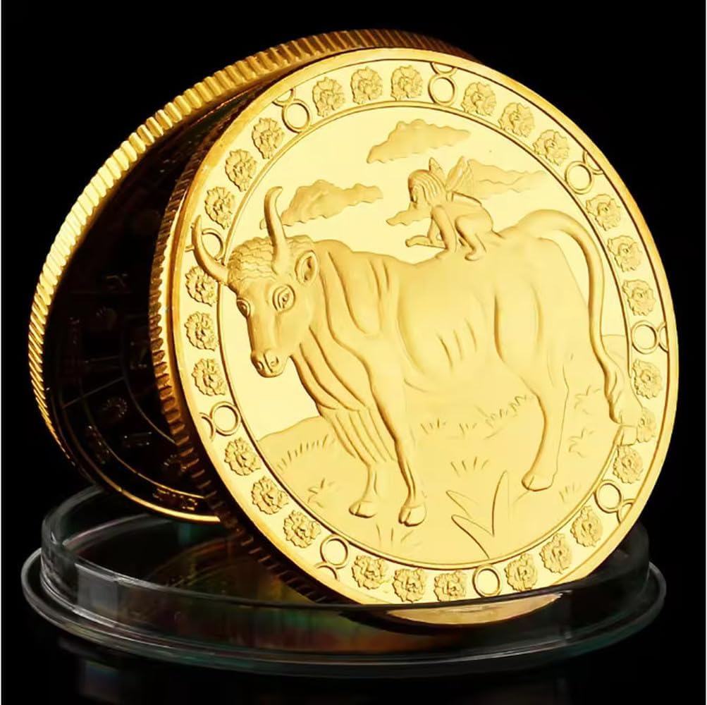 Monete Commemorative, Monete dello Zodiaco, Monete Souvenir Placcate in Oro del Toro, Monete Portafortuna dei Desideri, Regali da Collezione