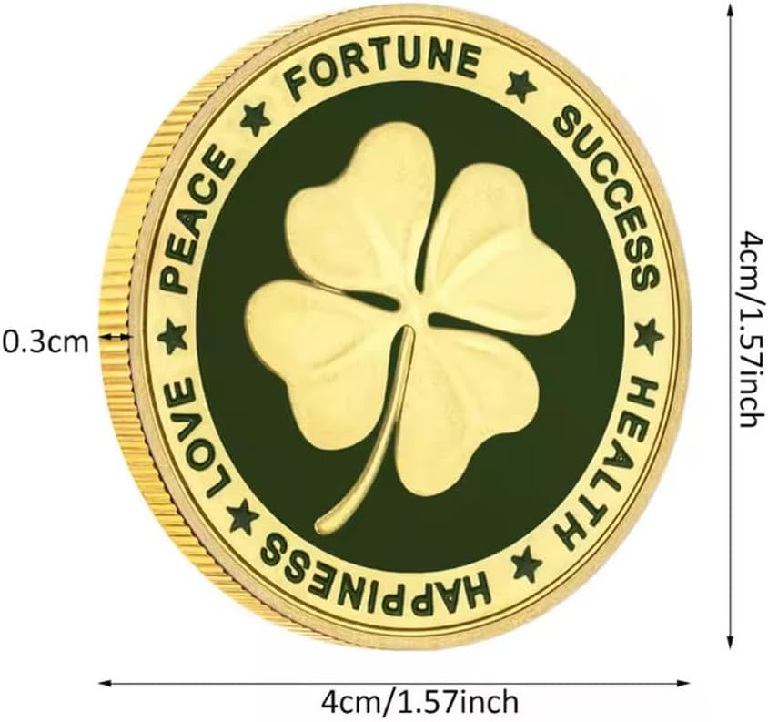 Monete Commemorative, Monete Portafortuna A Forma di Quadrifoglio, Monete Portafortuna Placcate in Oro/Argento, Souvenir da Collezione.