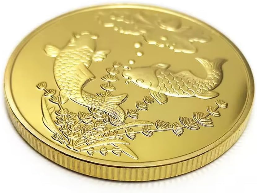 Monete Commemorative, Monete Souvenir Cinesi Placcate in Oro con Carpa Koi, Ti Portano Fortuna, Regali da Collezione, Monete Fortunate, Monete Souvenir