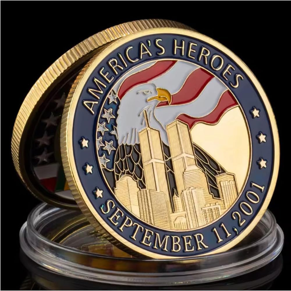 Monete Commemorative Placcate in Oro, Moneta Ricordo dell'11 Settembre 2001, Aquila Calva, Collezione di Regali con Motivo World Trade Center