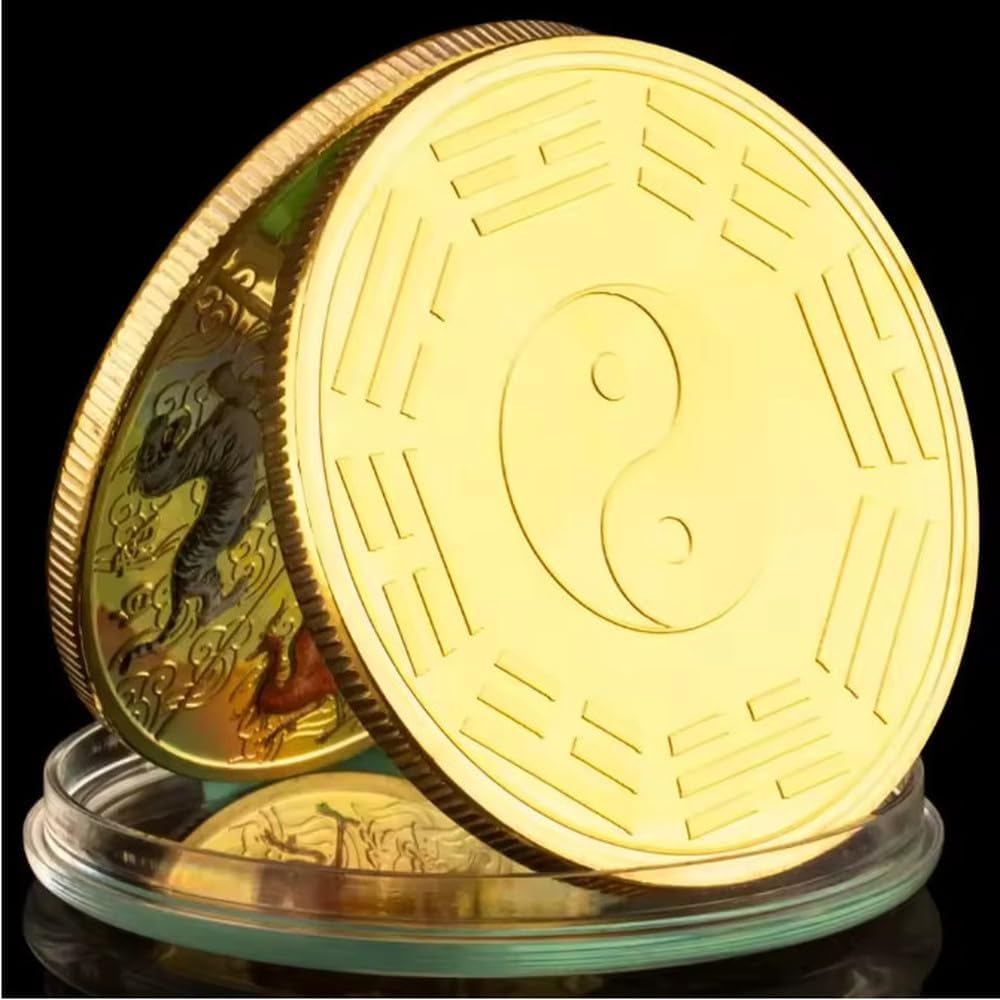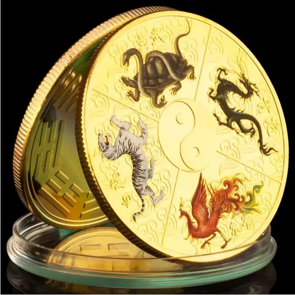 Monete Commemorative Quattro Grandi Creature Mitiche Drago Blu Placcato in Oro, Fenice, Tigre Bianca, Tartaruga Nera Moneta Souvenir Tai Chi