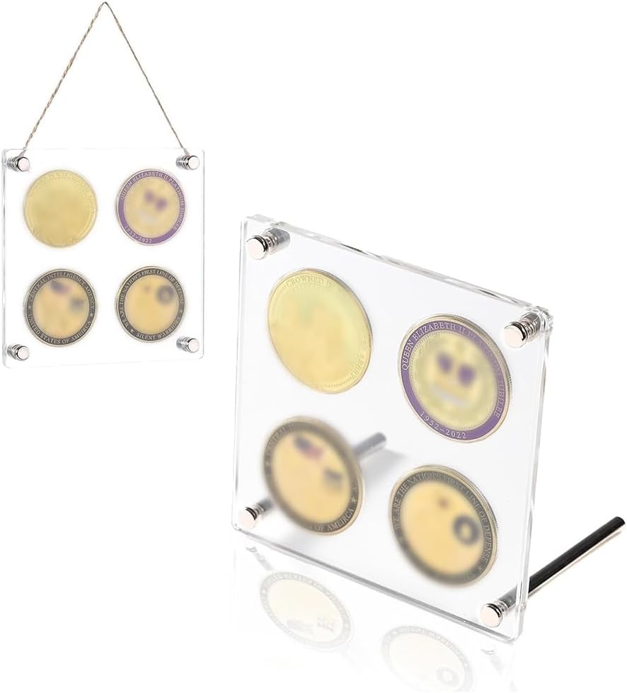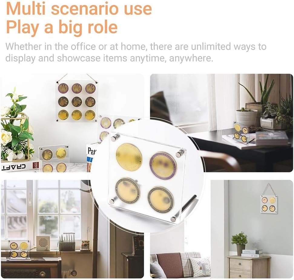 Questo versatile espositore per monete da sfida militare è progettato in modo intelligente come espositore da parete salvaspazio e accattivante o può essere facilmente posizionato su un tavolo per una visione ravvicinata. In questo modo, la tua collezione di monete diventerà in molti modi il pezzo forte del tuo arredamento. Il display è realizzato in materiale acrilico trasparente di eccellente qualità ed è garantito per essere trasparente e durevole, il tuo display brillerà con qualsiasi luce. Questo espositore trasparente, sigillato e antipolvere non solo fornisce una piattaforma espositiva ideale, ma garantisce anche che la tua collezione sia protetta dall'umidità. Mostra il tuo esercito e rendi l'individuo un simbolo d'onore. Le monete possono essere visualizzate chiaramente, rimosse individualmente e conservate per una comoda visualizzazione, raccolta o condivisione con gli amici.