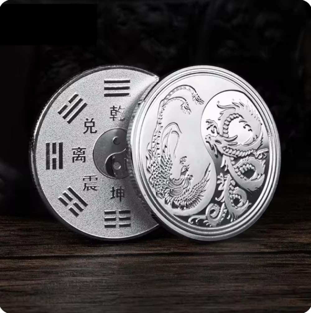 Monete fortunate del Tai Chi cinese Dragon Phoenix Moneta commemorativa in metallo Feng Shui Collezione di souvenir