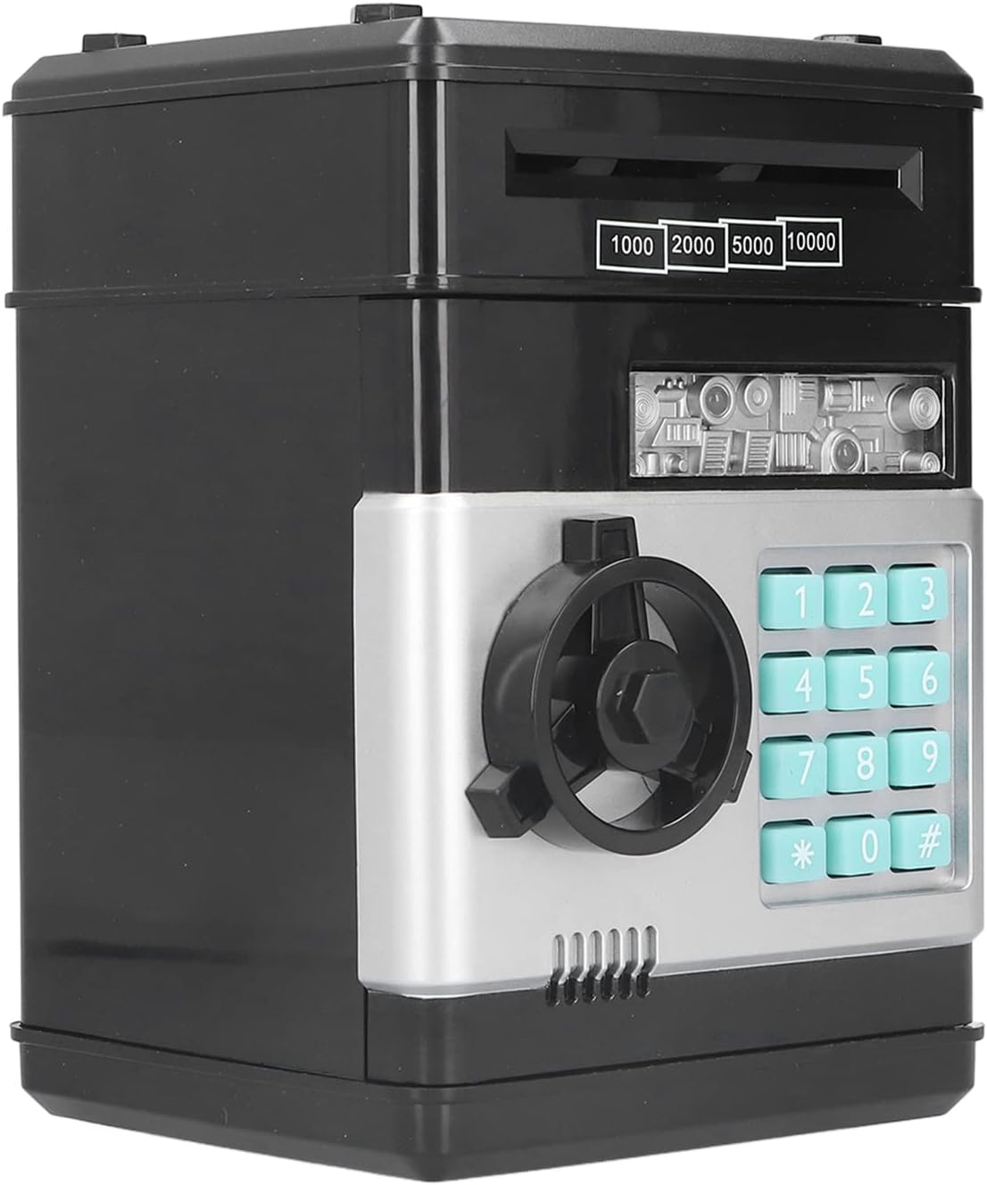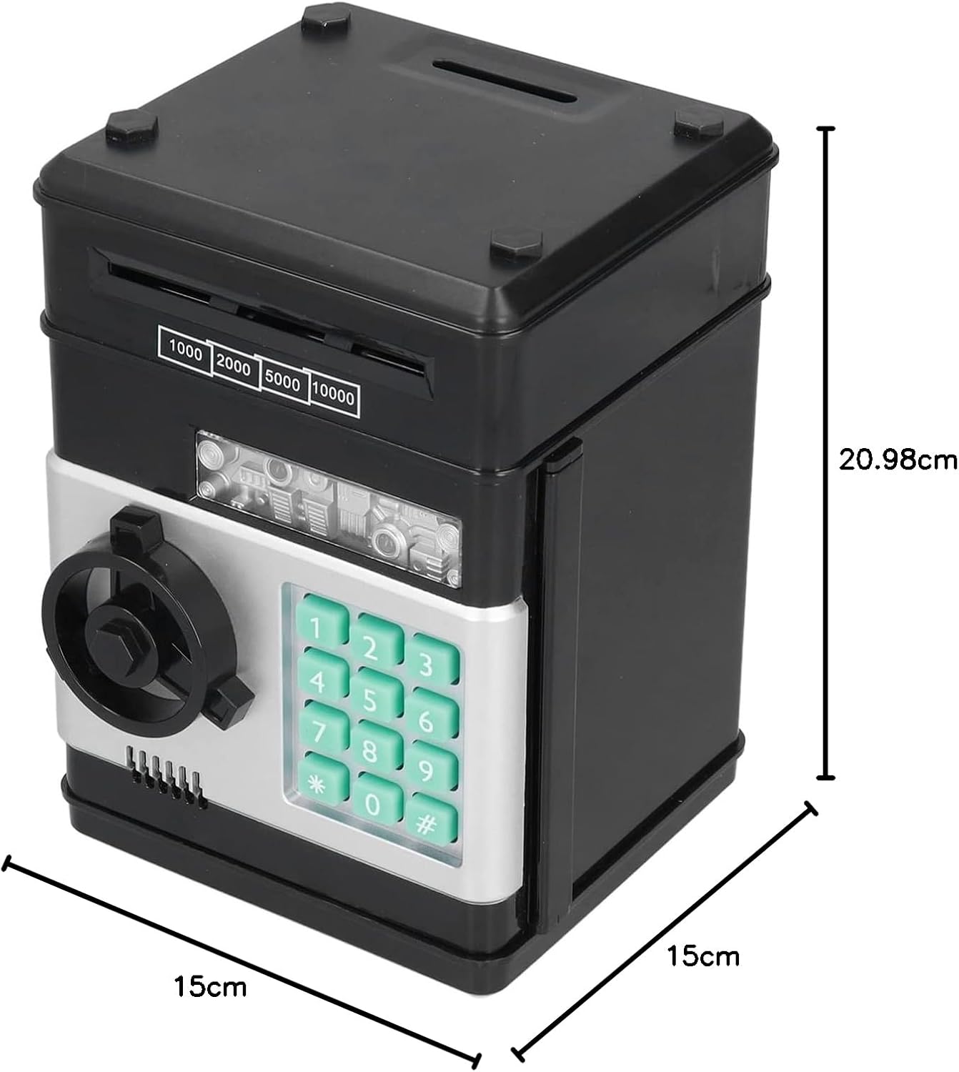 [ABS ecologico]: realizzato in plastica ABS ecologica di alta qualità, resistente e sicuro sia per gli adulti che per i bambini. [Comodo slot di monete]: include una comoda slot di monete in cima per la conservazione di varie monete. [Bill Roll automatico]: inserire facilmente le bollette nello slot e guardare mentre vengono automaticamente arrotolati nella scatola di carta. [Funzione 2 in 1]: funziona come una casella di risparmio di denaro e una cassaforte protetta da password, rendendolo un modo divertente e unico per i bambini di risparmiare. [Essenziale per i bambini]: aiuta molto a coltivare buone abitudini di risparmio nei bambini, rendendolo un'opzione ideale.