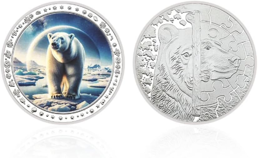 Monete placcate in argento dell'orso polare Medaglia commemorativa degli animali artici Oggetti da collezione placcati in argento Ornamento in metallo da tavolo artigianale