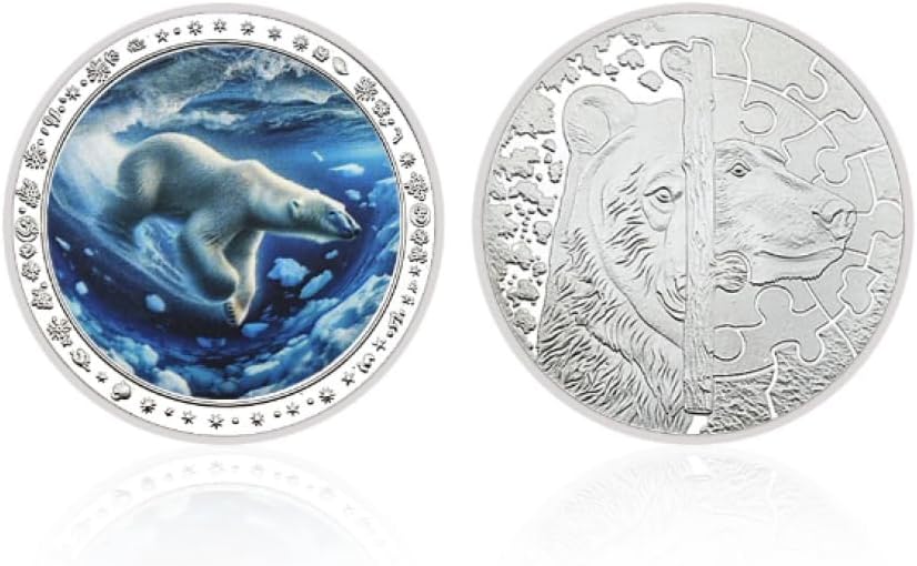 Monete placcate in argento dell'orso polare Medaglia commemorativa degli animali artici Oggetti da collezione placcati in argento Ornamento in metallo da tavolo artigianale