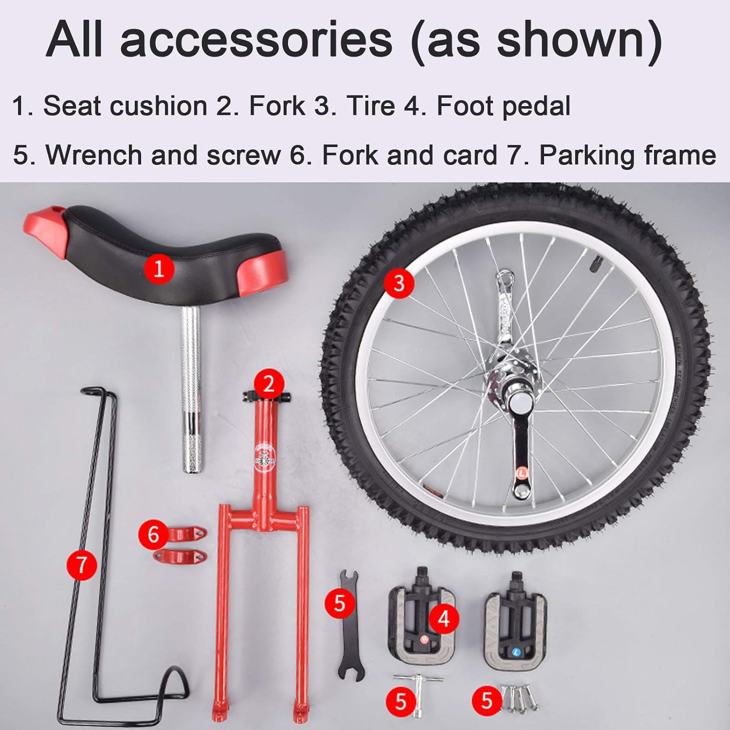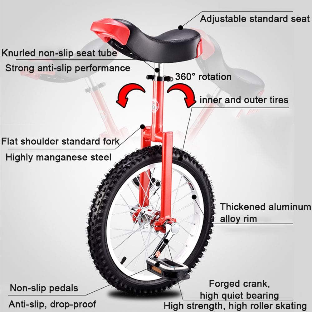[SELLA STANDARD E CONFORTEVOLE] Parte anteriore alta e fondo spesso, comoda e resistente, design unico dei braccioli anteriori e posteriori, design ergonomico, morbido e confortevole; modellatura una tantum senza giunzioni, non facile da indossare; presa comoda, guida più sicura; Estendere l'asta di regolazione, il campo di regolazione è ampio. [ROBUSTO E DUREVOLE] Il monociclo ha un robusto telaio in acciaio al manganese. I bordi in lega di alluminio ultra spessi possono essere utilizzati a lungo e i pneumatici interni sono a prova di perdite. Ottimi pneumatici da montagna antiscivolo. Sella grande con ringhiera in poly-nylon rimovibile. [GUIDA SICURA] Ruote di alta qualità/pneumatici larghi/pneumatici spessi garantiscono maggiore controllo e stabilità per evitare di perdere l'equilibrio in caso di collisioni e rotture sulla strada. Il design antiscivolo di pedali e ruote offre una doppia protezione. [Forcella a spalla piatta standard internazionale] È raffinata in acciaio al manganese ad alta resistenza e saldata con squame di pesce; eccellenti prestazioni di tenuta, resistenza alla corrosione; design meccanico perfetto, robusto e compresso Con questo monociclo puoi viaggiare su strada velocemente e facilmente. Il semplice assemblaggio garantisce un avvio regolare senza inutili complicazioni.