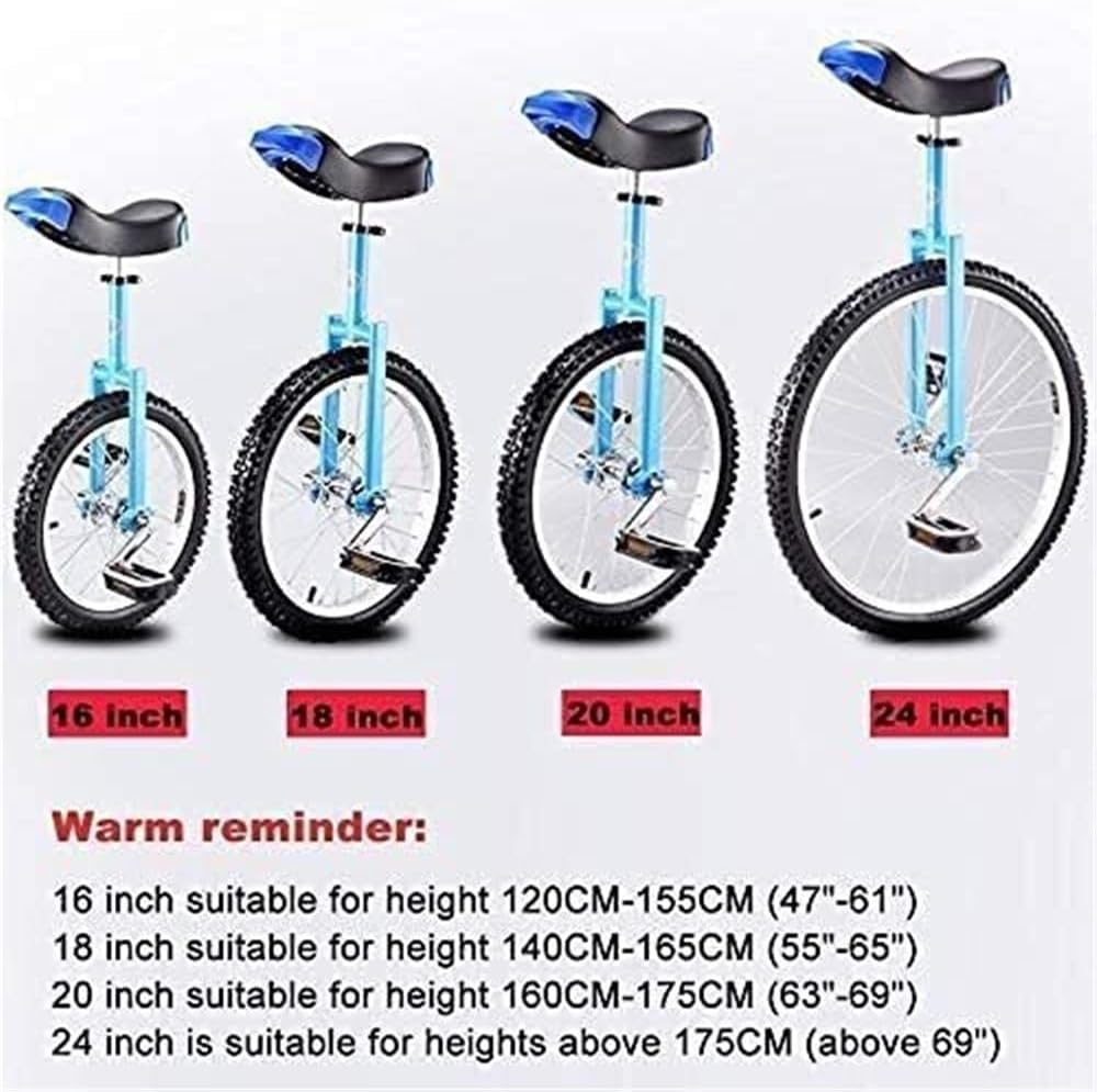 Questo monociclo leggero e robusto è facile da montare. Il morsetto del reggisella a sgancio rapido e la chiave sono inclusi, così puoi montarlo in pochi minuti ed essere pronto per una corsa stimolante e divertente. Se hai domande, ti preghiamo di contattarci e ti risponderemo entro 24 ore. I nuovi monocicli con ruote da 16 pollici, 18 pollici, 20 pollici e 24 pollici, design ergonomico e la massima qualità sono esattamente ciò che hai sempre sognato! Il design antiscivolo del pneumatico esterno e dei pedali impedisce lo scivolamento. La maniglia del sedile è comoda da tenere per i principianti durante la guida. Perfetto per principianti e professionisti, in particolare bambini e adolescenti per esercitarsi nell'equitazione e migliorare l'equilibrio. È un regalo divertente e anche un regalo di Natale o un regalo di compleanno per bambini e amici. Perfetto per lo sport, l'esercizio fisico e le attività ricreative.