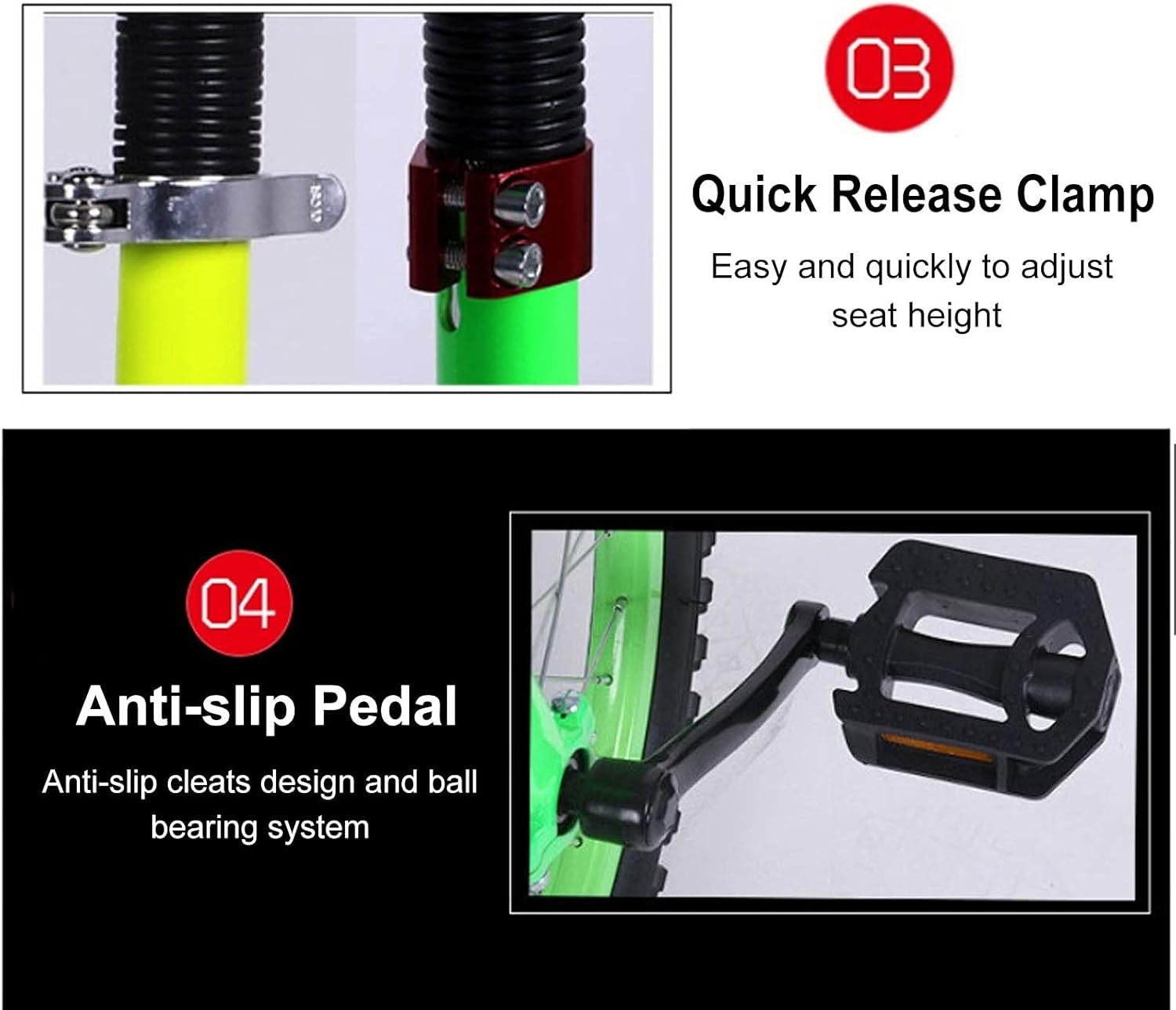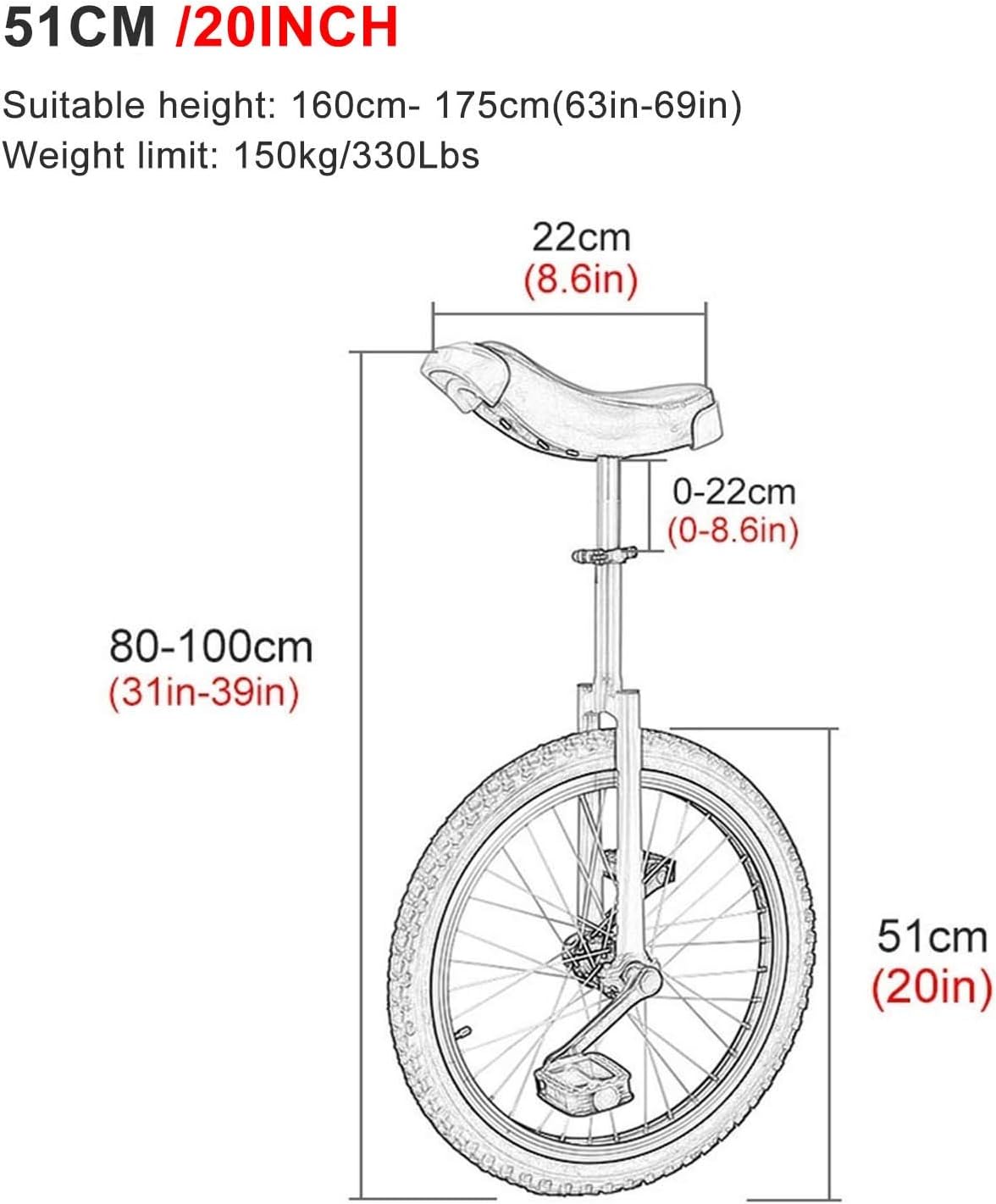 🚴 Utilizzo per ragazzi e ragazze: 51 cm (20 pollici) per un'altezza applicabile da 160 a 175 cm (da 63 pollici a 69 pollici), limite di peso: 150 kg (330 libbre) 🚴 Robusto e durevole: monociclo con robusto telaio in acciaio al manganese; Bordo in lega di alluminio ispessito per una migliore presa. 🚴 Design antiscivolo: pneumatico esterno e pedale antiscivolo per evitare scivolamenti. Maniglia del sedile antiscivolo per i principianti da toccare durante la guida. 🚴 Facile da montare: il morsetto del reggisella a sgancio rapido e una chiave vengono forniti con il monociclo, completa l'installazione in pochi minuti e preparati. 🚴 Ideale per principianti e professionisti, soprattutto bambini e adolescenti, per praticare l'equitazione e migliorare l'equilibrio. Questo è un regalo divertente, un regalo di Natale, un regalo di compleanno per bambini e amici.