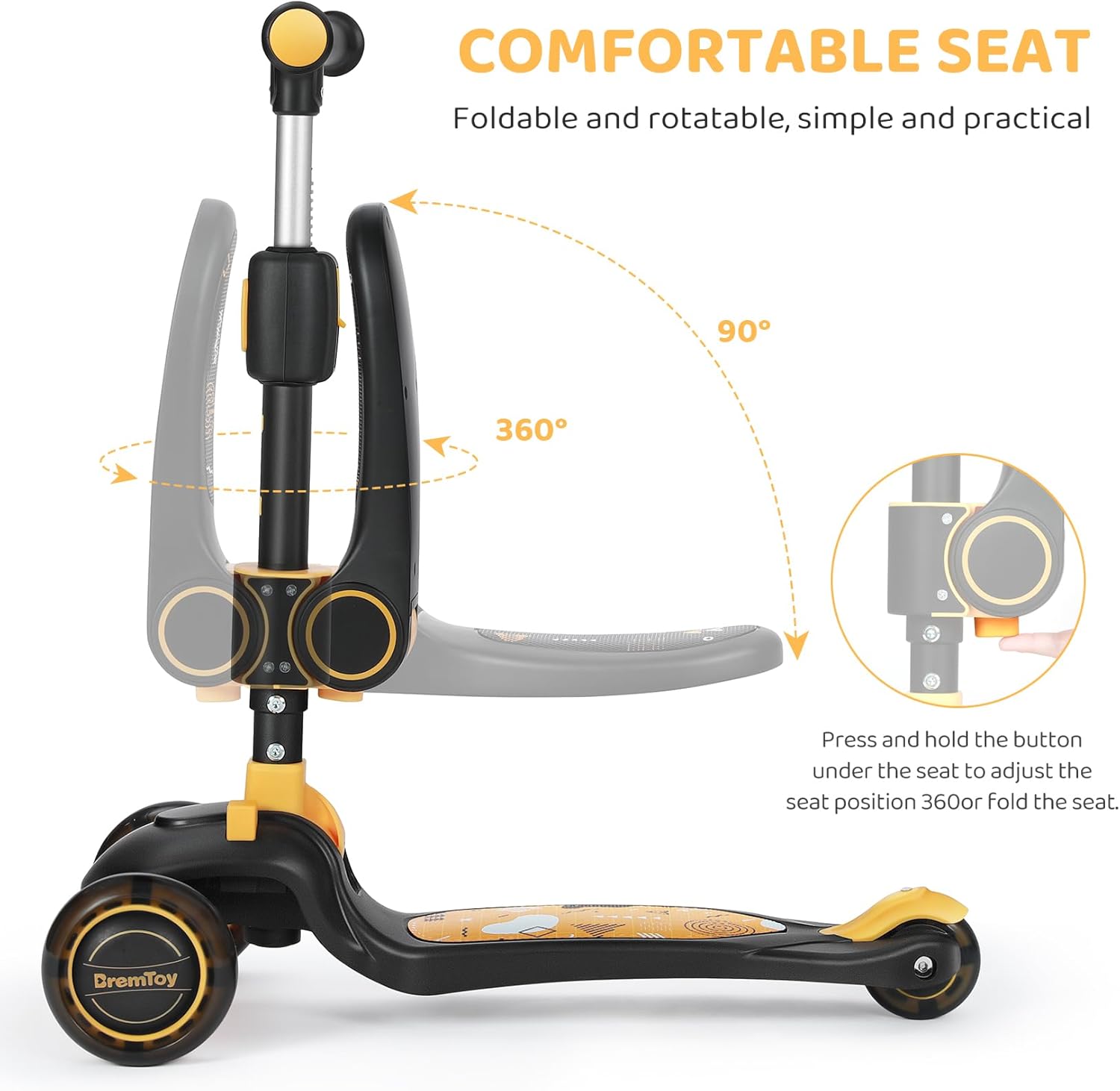 MANUBRIO FINALMENTE REGOLABILE: L'altezza del manubrio dello scooter per bambini BremToy 2024 aggiornato può essere regolata in millimetri, con oltre 30 livelli di regolazione dell'altezza per adattarsi a bambini di diverse età e rendere l'uso più confortevole per i bambini. GUIDA SEDUTA E IN PIEDI: il sedile è pieghevole e girevole, semplice e pratico. Grazie al design del sedile girevole a 360°, il tuo bambino può guidare lo scooter seduto o in piedi. Accompagna il tuo bambino nella crescita e gli dà più gioia. SICURO E STABILE: La capacità di carico massima è di 50 kg. Progettato con struttura a triciclo, dotato di freno sensibile, pedale antiscivolo e maniglia, lo scooter per bambini BremToy è robusto e stabile per garantire la sicurezza dei tuoi bambini. SPOSTAMENTO DEL PESO: lo scooter sterza spostando il peso, il che è più sicuro e può favorire il senso di equilibrio dei bambini. Servizio post-vendita veloce: se hai qualche domanda, puoi contattarci e ottenere feedback entro 24 ore.