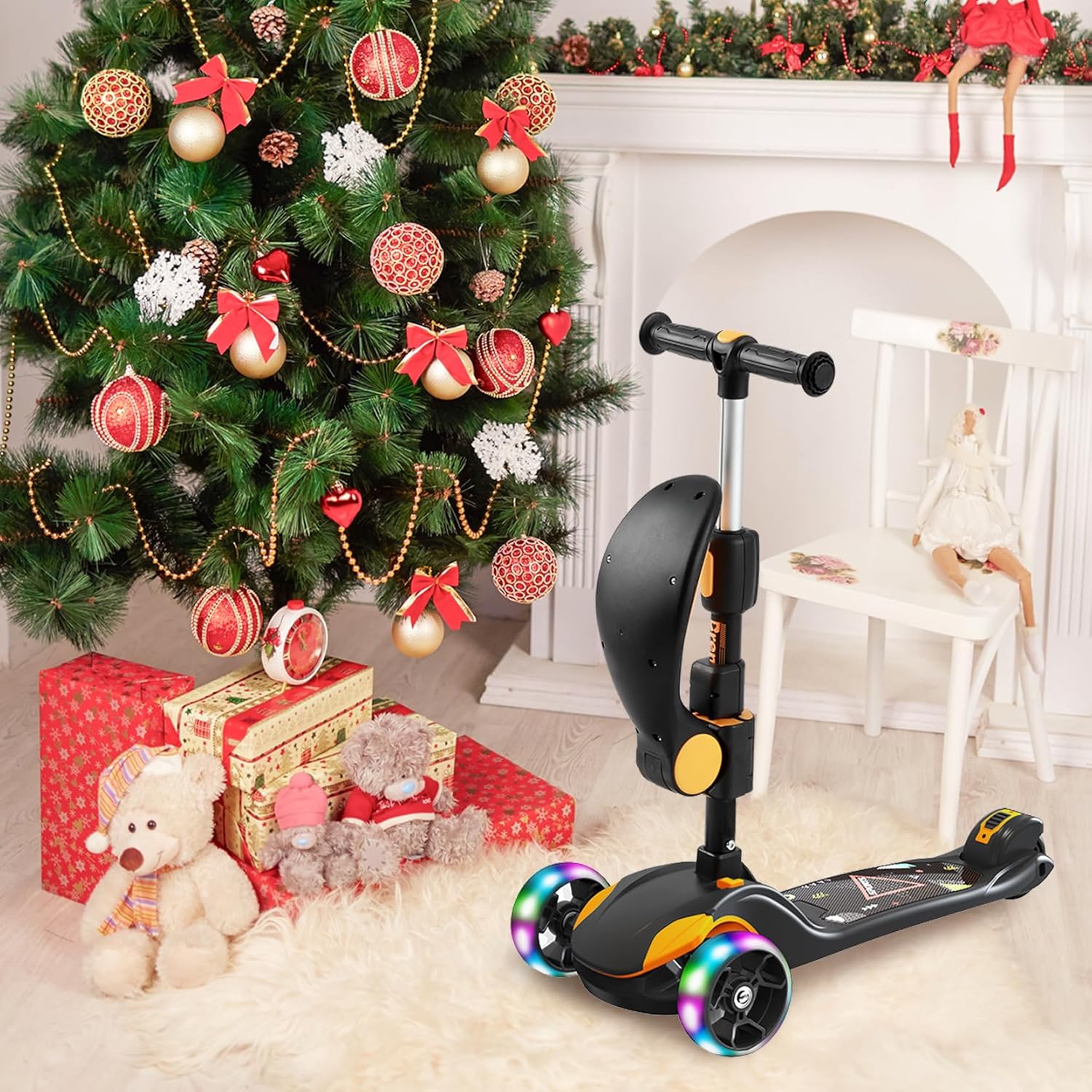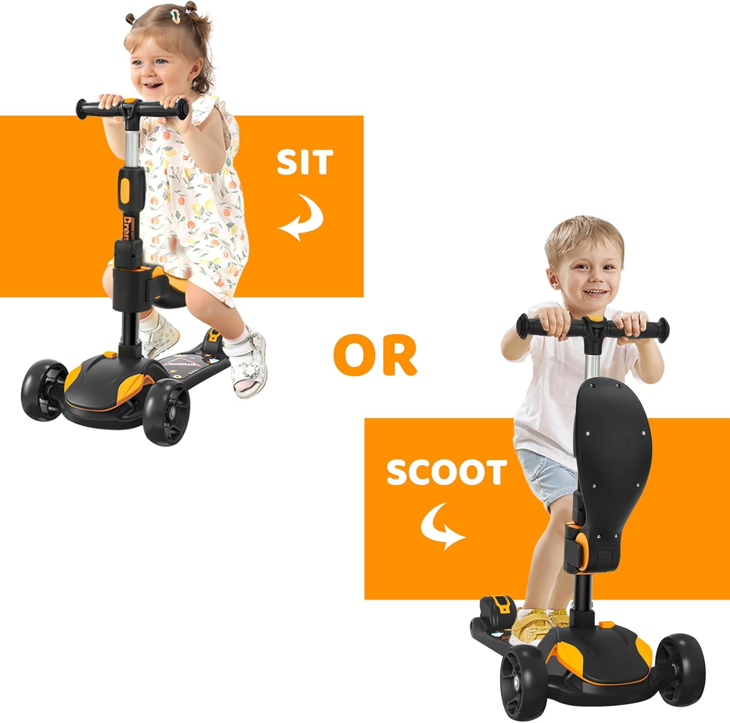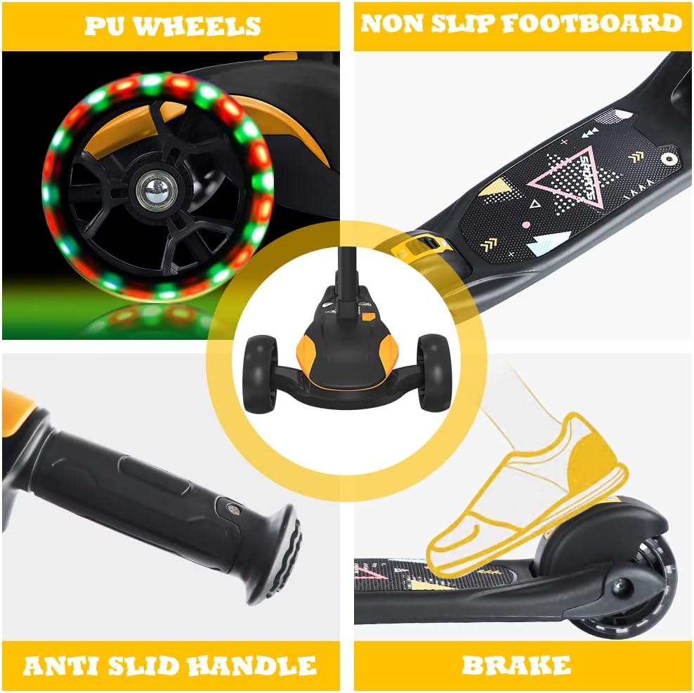 MANUBRIO FINALMENTE REGOLABILE: Nella versione aggiornata del monopattino BremToy 1003, l'altezza del manubrio è regolata in millimetri, e ci sono più di 30 livelli di regolazione dell'altezza che si adattano perfettamente all'altezza del bambino, rendendolo più comodo da usare per i bambini. Regolazione dell'altezza del sedile: per regolare l'altezza del sedile, rimuovere la staffa dallo stelo dello scooter con il cacciavite in dotazione. Lo scooter per bambini ha 3 altezze del sedile regolabili (20-24-30 cm) per adattarsi a diverse dimensioni ed età. Tieni presente che il tuo bambino può appoggiare i piedi sul pavimento quando è seduto. RUOTE DI ALTA QUALITÀ: le 3 robuste ruote in PU con brillantini luminosi dovuti all'attrito tra le ruote e il pavimento, visibile anche durante il giorno. I tuoi bambini adoreranno sicuramente guidare questo scooter senza intoppi. SICURO E STABILE: lo scooter per bambini BremToy è prodotto con una struttura triangolare. Questo rende lo scooter molto stabile. La pedana e le maniglie sono tutte antiscivolo. Facciamo del nostro meglio per garantire la sicurezza dei vostri bambini. SEDILE RIMOVIBILE: il monopattino per bambini BremToy è dotato di un comodo sedile (capacità di carico massima 20 kg). Puoi rimuovere o piegare il sedile come preferisci. I bambini di età compresa tra 1 e 3 anni sono particolarmente adatti a questo scopo. In piedi la capacità di carico massima è di 50 kg. Il tuo bambino potrà divertirsi sia seduto che in piedi. Servizio clienti veloce: se hai domande, puoi contattarci e ottenere feedback entro 24 ore