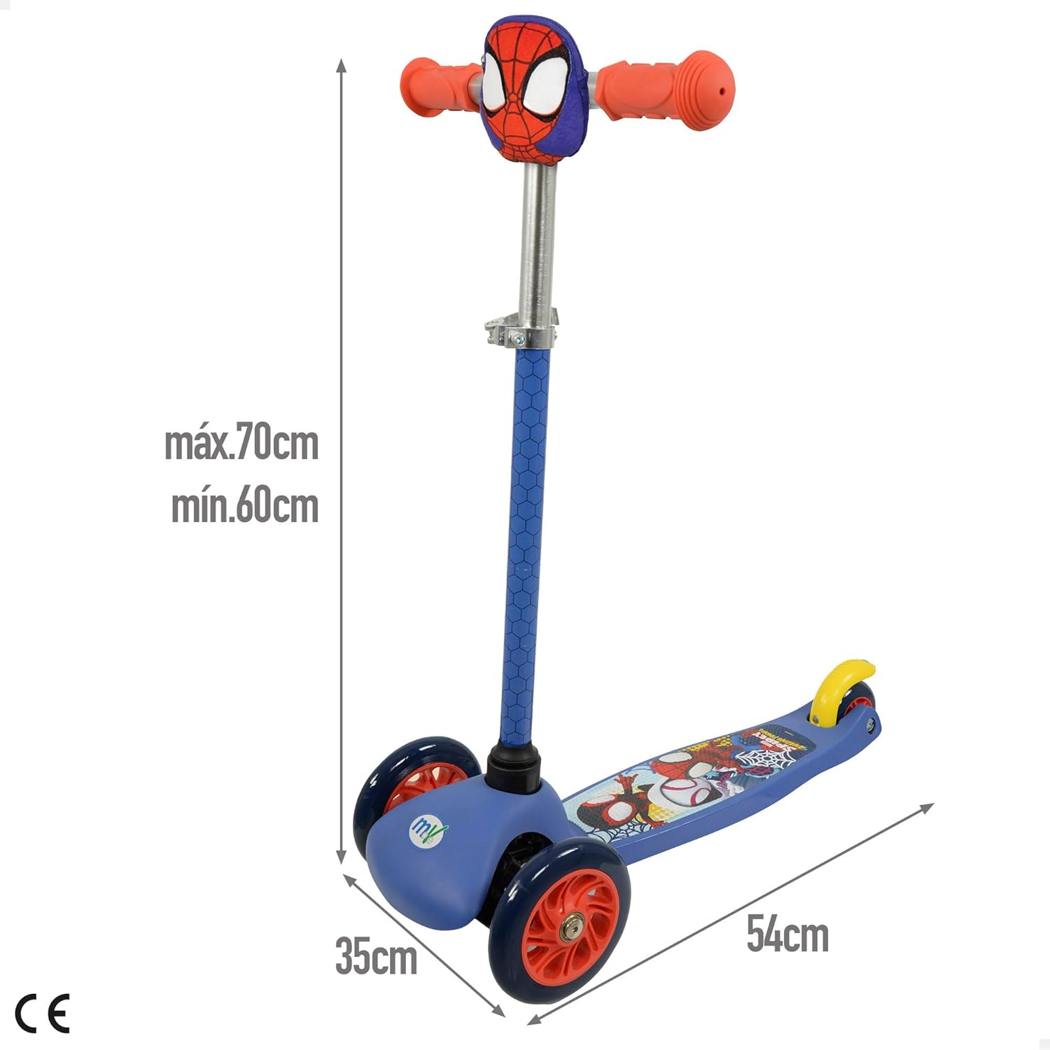 Età: consigliato dai 3 anni Design: Monopattino per bambini a 3 ruote, 35 x 54 x 60/70 cm, licenza ufficiale Marvel Spidey, con pedana antiscivolo e colori accattivanti Design: Monopattino per bambini a 3 ruote, licenza ufficiale Marvel Spidey, con pedana antiscivolo e colori vivaci Accessori: Con tasca decorata sul davanti per piccoli oggetti Valori: sviluppa le capacità motorie globali, promuove l'attività fisica e rafforza la socializzazione