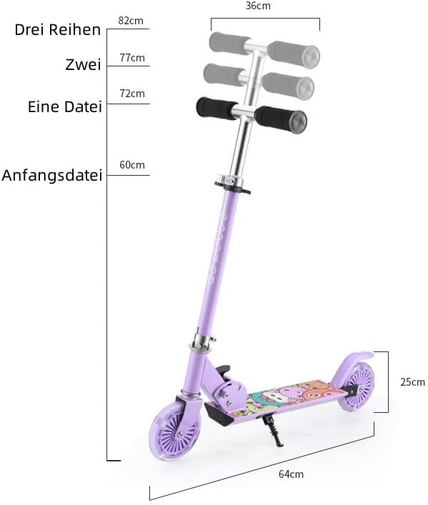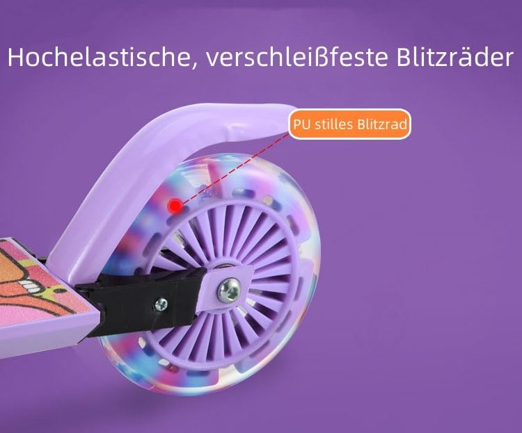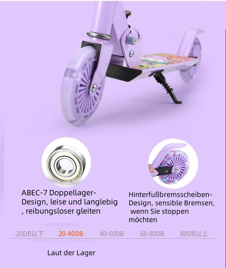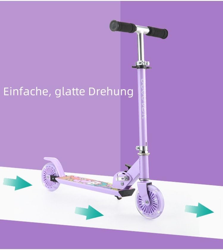 Funzionamento fluido con ruote lampeggianti e guida silenziosa: guida piacevolmente silenziosa grazie ai pneumatici piatti in PU di alta qualità (e ai cuscinetti a sfera ABEC-7 particolarmente silenziosi e scivola molto bene su diversi pavimenti. Le ruote sono durevoli e resistenti Robusta struttura in alluminio per stabilità: adatto a bambini dai 3 anni in su grazie alla solida struttura in alluminio resistente. Ciò garantisce una guida stabile e sicura e supporta in modo affidabile Facile regolazione dell'altezza e utilizzo confortevole: Il manubrio è leggero e rapidamente regolabile a diverse altezze, in modo che lo scooter possa essere facilmente regolato a diverse altezze con il bambino Il comodo gradino è antiscivolo e offre una buona presa. Lo sterzo funziona in modo fluido e fluido. Pratico design pieghevole e frenata sicura: le maniglie e il battistrada sono antiscivolo