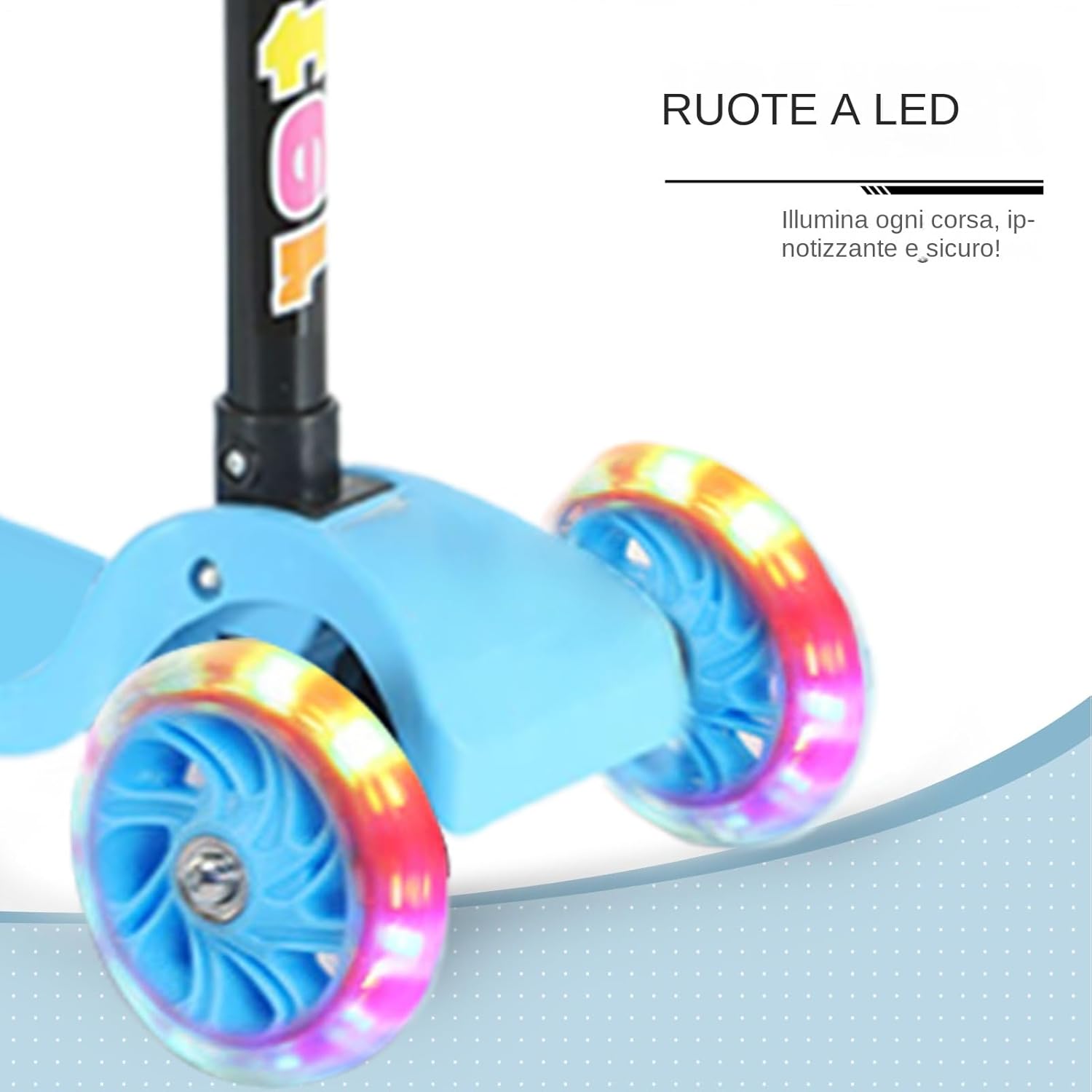 Sicurezza e stabilità: L'ampio battistrada antiscivolo garantisce sicurezza e riduce il rischio di ribaltamento, il design triangolare bilanciato migliora la stabilità durante la guida e lo rende ideale per i principianti e i primi approcci ai monopattini pieghevoli Sviluppo motorio: Monopattino pieghevole per supportare lo sviluppo motorio con manubrio regolabile in altezza e impugnatura ergonomica e confortevole, ideale per bambini dai 2 agli 8 anni. Promuove un esercizio sicuro e divertente migliorando la coordinazione e l'equilibrio attraverso il gioco attivo. Massima ottimizzazione dello spazio: lo scooter pieghevole con meccanismo di sgancio rapido migliora la portabilità, ideale per l'uso quotidiano in vari ambienti. Si riduce a dimensioni compatte per riporlo facilmente quando si viaggia o in casa, massimizzando lo spazio disponibile senza compromettere la funzionalità. Equilibrio naturale: design integrato a baricentro basso con ruota anteriore a molla e sella profilata, garantisce stabilità costante e comfort ottimizzato senza affaticamento durante la guida. Sicurezza e divertimento: le luci LED attivate dalla gravità hanno un effetto luminoso vivido che migliora la visibilità notturna, rendendo ogni corsa piacevole e coinvolgente per gli utenti di tutte le età