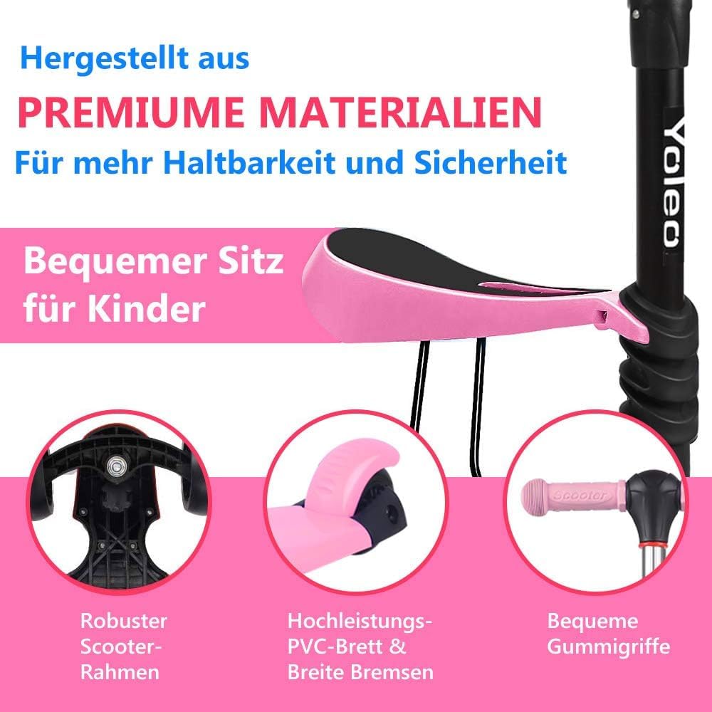DOPPIA MODALITÀ SCORREVOLE: il monopattino per bambini Yoleo è progettato con un sedile rimovibile. I bambini possono sedersi sopra e scivolare. È anche molto facile rimuovere il sedile, quindi questo scooter sarà uno scooter. Facile montaggio, divertimento multiplo PROTEZIONE STABILE AL ROTOLO: il telaio dello scooter si combina con il principio dinamico ed è progettato in una struttura triangolare stabile, che garantisce un rotolamento regolare ed evita il rischio di ribaltamento. EFFICACE ASSORBIMENTO DEGLI AMMORTIZZATORI: i materiali delle ruote in PU allargati e ispessiti sono ottimi per la resistenza all'usura e l'assorbimento degli urti. I bambini potrebbero facilmente guidare il nostro scooter su quasi tutti i marciapiedi senza alcun dolore. RUOTE SUPER FANTASTICHE: le 2 ruote sono realizzate con bellissime luci colorate integrate. Durante lo spostamento le ruote si illuminano, cosa che può essere vista anche di giorno. I tuoi bambini adoreranno giocare e divertirsi con il monopattino Yoleo. ALTEZZA REGOLABILE PER ANNI: L'altezza è regolabile da 65 cm a 77 cm. Ci sono anche 3 posizioni di seduta regolabili per diverse altezze ed età. È un ottimo regalo per i bambini che possono crescere con i bambini COME USARE: Non sono necessarie batterie, premere rapidamente per accendersi. (Nota: quando si fa scorrere per la prima volta, è necessario essere veloci, potrebbe non accendersi se si fa scorrere troppo lentamente.) Il manubrio non ruota direttamente, ma si affida alla gravità del corpo dell'utente per ruotare e cambiare la direzione di scorrimento