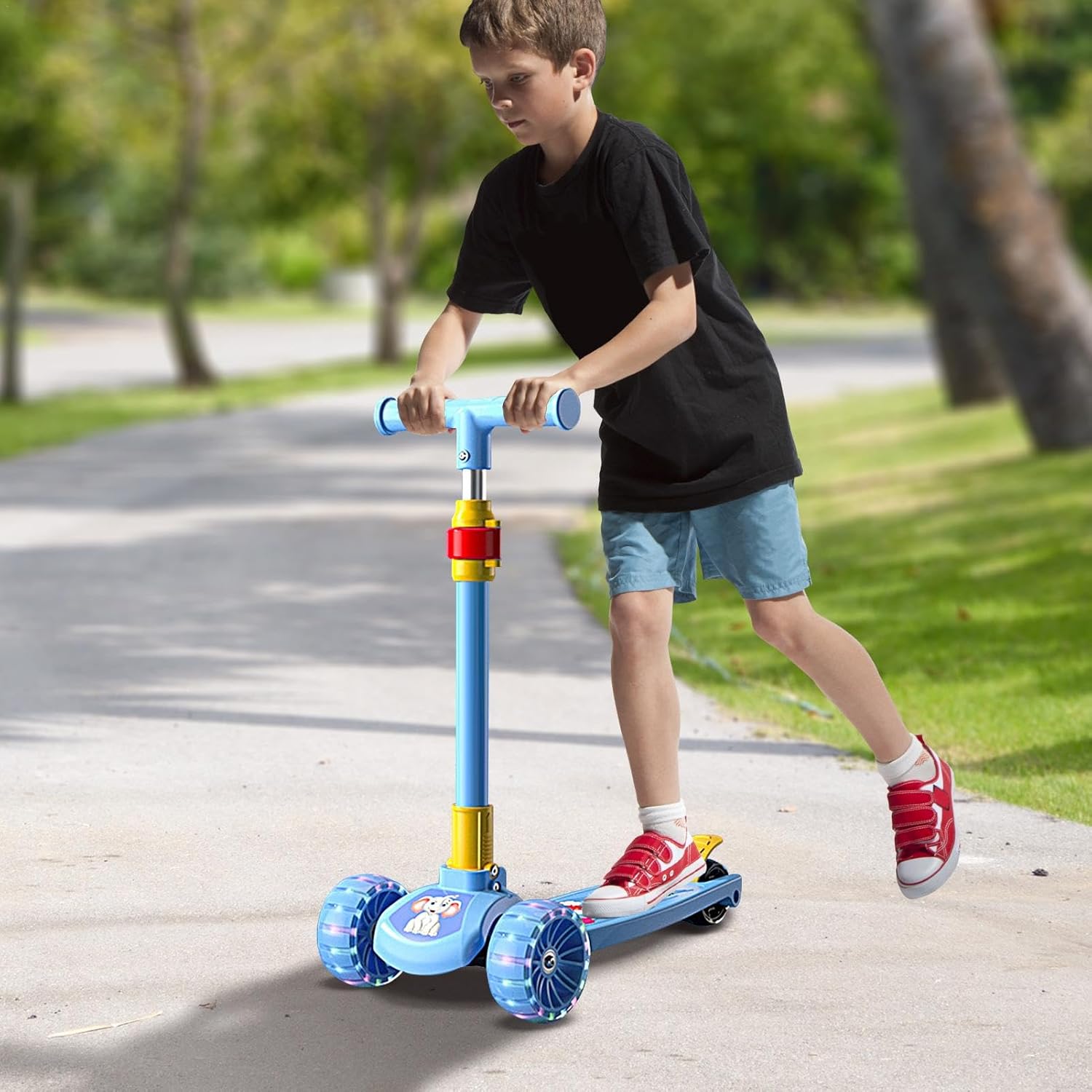 Facile direzione del perno: monopattino per bambini con funzioni facili da usare che forniscono planata e controllo flessibile nella direzione della svolta, migliorati dal rilevamento intelligente per garantire che non si ribalti. Facile frenata: la struttura triangolare con un freno a pedale affidabile sul nostro monopattino per bambini crea una guida sicura e stabile, offrendo tranquillità ai genitori mentre i bambini si divertono a pattinare. Regolazione dell'altezza: sperimenta il massimo comfort con il nostro monopattino pieghevole per bambini che dispone di impostazioni di altezza regolabili per bambini di tutte le taglie e 4 opzioni di altezza tra cui scegliere. Ideale per ragazzi e ragazze dai 2 ai 12 anni, garantisce il massimo comfort. Lunga durata: lo scooter per bambini è dotato di materiale ABS robusto e affidabile con ruote in PU resistenti, garantendo una guida sicura per i bambini. La sua funzione regolabile in altezza garantisce il massimo comfort e praticità per i bambini. Ampiamente utilizzato: il nostro scooter per bambini è progettato per offrire un'esperienza all'aperto piacevole e sicura. Che si tratti della strada per andare a scuola o della libertà nel parco, nel cortile o nel parco giochi, il suo design pieghevole garantisce praticità e facilità di stoccaggio
