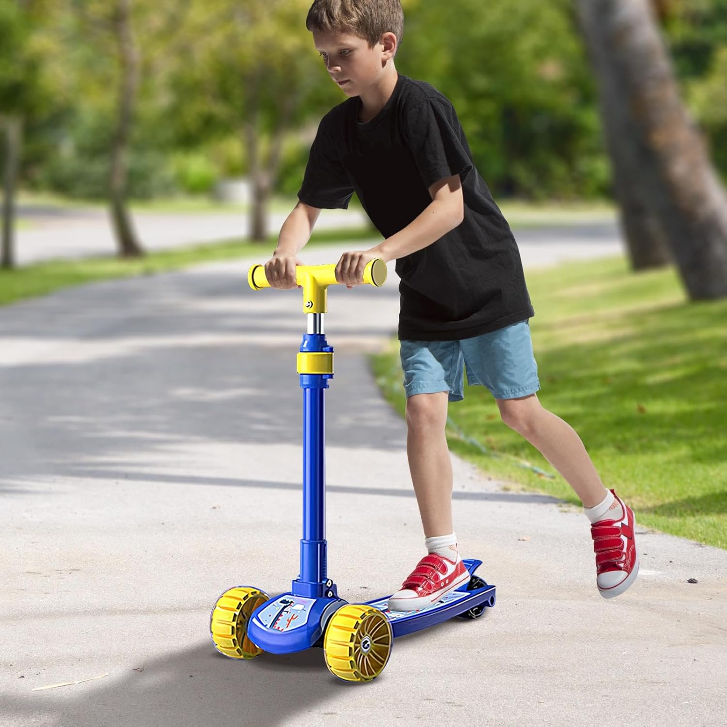 Facile direzione di rotazione: monopattino per bambini con caratteristiche facili da usare, che offre una scorrevolezza e un controllo flessibile della direzione di rotazione, migliorato da un rilevamento intelligente per garantire il non ribaltamento. Frenatura facile: la struttura triangolare con un freno a pedale affidabile sul nostro monopattino per bambini crea una guida sicura e stabile, offrendo ai genitori tranquillità mentre i bambini si divertono a pattinare. Flessibilità migliorata: monopattino pieghevole per bambini, adatto a bambini di tutte le taglie, con 4 altezze tra cui scegliere, adatto per ragazzi e ragazze dai 2 ai 12 anni. Materiale affidabile: questo scooter per bambini, realizzato in materiale ABS robusto e affidabile, ha un'altezza regolabile e ruote in PU affidabili, garantendo una lunga durata ai bambini Ampia gamma di applicazioni: ideale per i viaggi scolastici, questo monopattino pieghevole è adatto a vari scenari come cortile, parco e parco giochi, garantendo più divertimento all'aria aperta