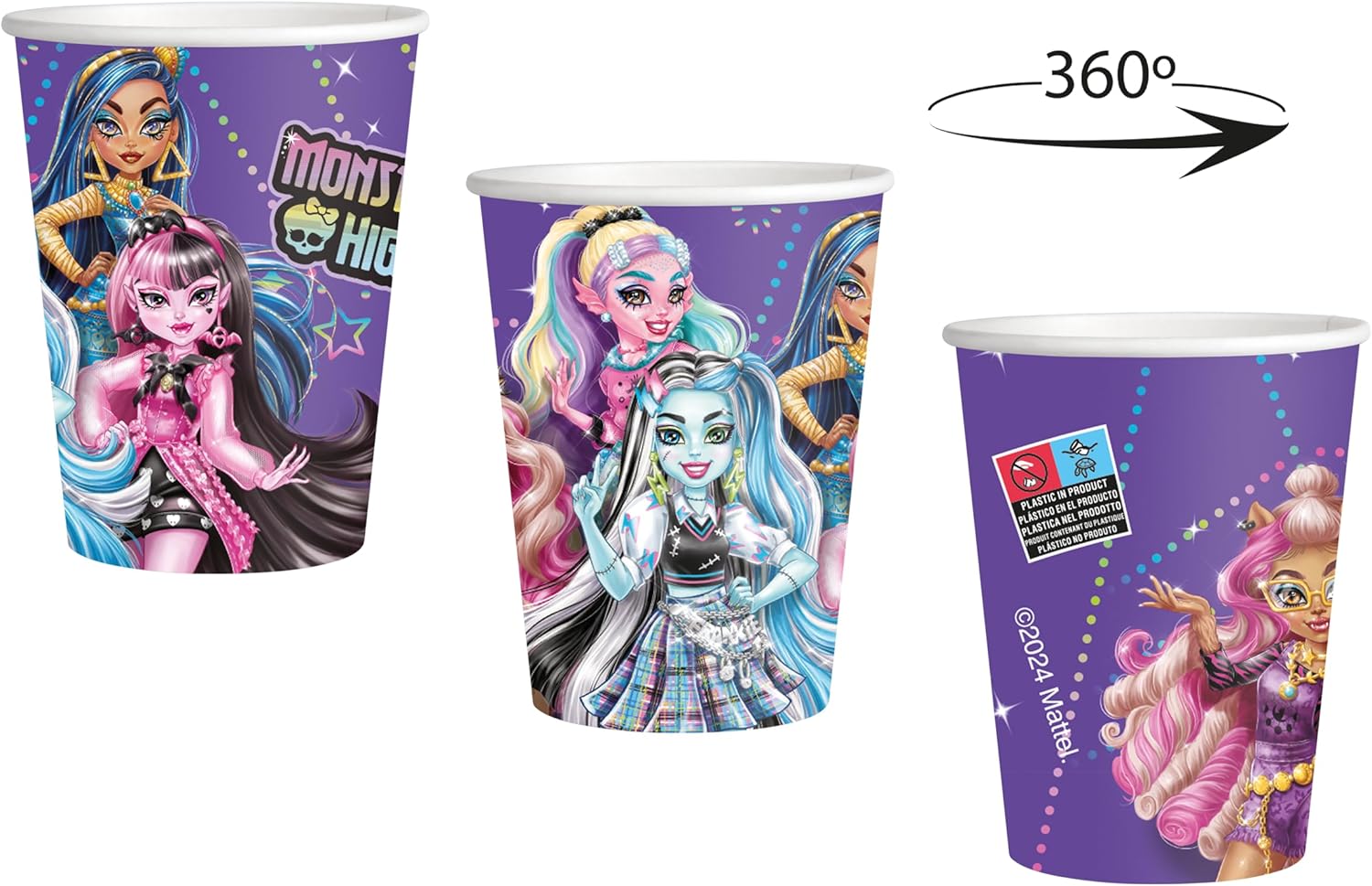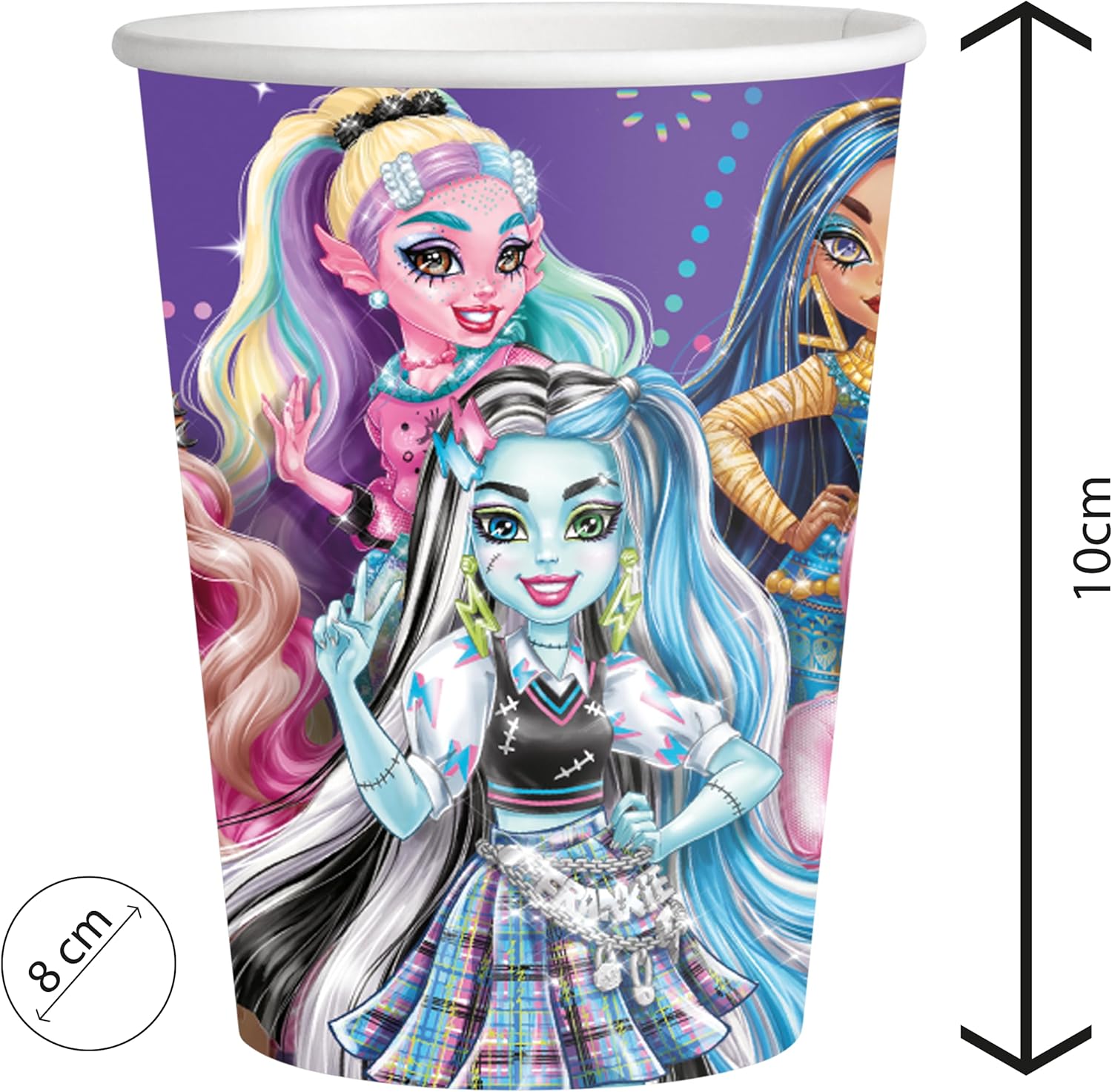 8 TAZZE DA 250 ML. Le tazze sono in cartone, resistenti, colorate ed ecologiche. Ogni confezione contiene 8 bicchieri con una capacità di 250 ml. BICCHIERI A TEMA. Organizzate una festa a tema e d'atmosfera con questo speciale servizio da tavola. BICCHIERI PER FESTE. Utilizzabili con qualsiasi bevanda, bibite e acqua, sono perfetti per decorare in modo originale la tavola di compleanni, feste o party a tema. RISPARMIO DI TEMPO. Con questi bicchieri vi dimenticherete della pulizia e del disordine dopo la festa. Sono facili da smaltire