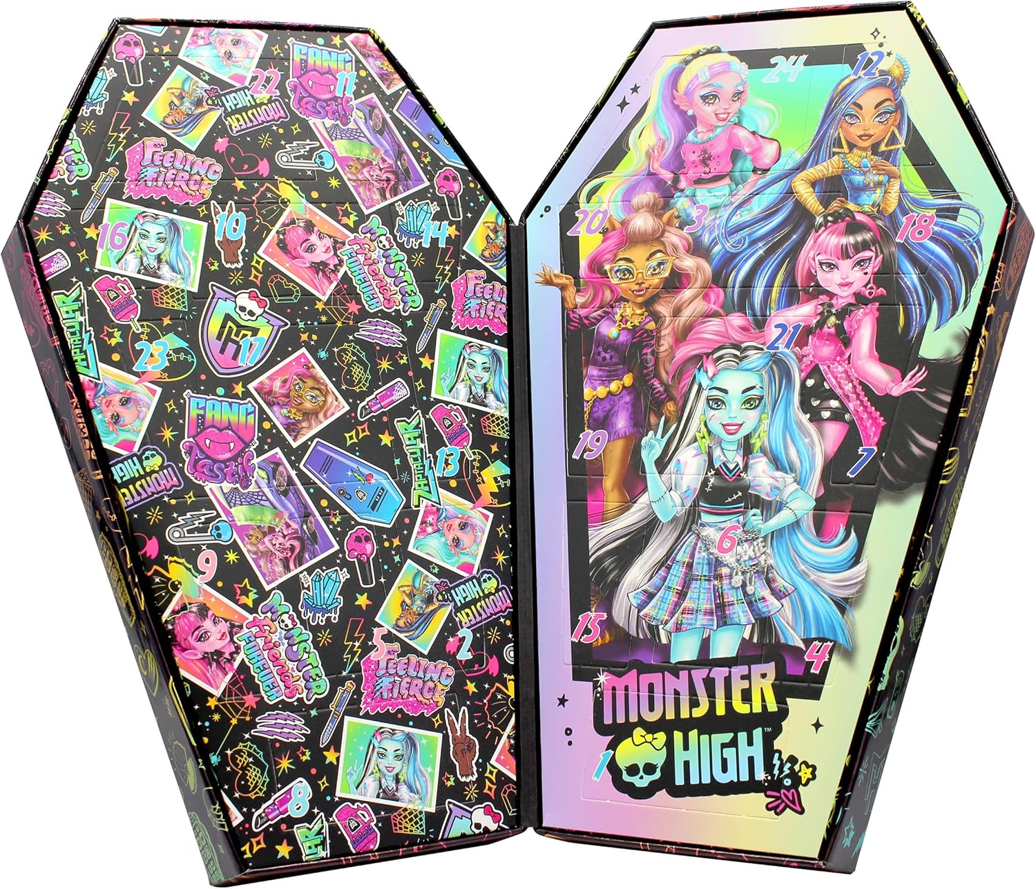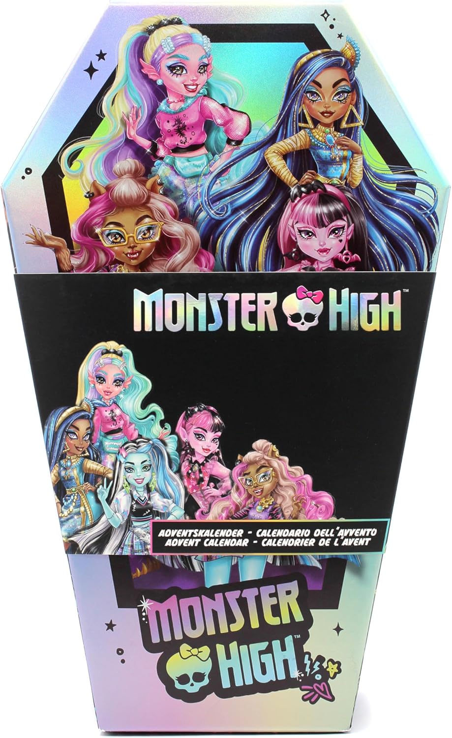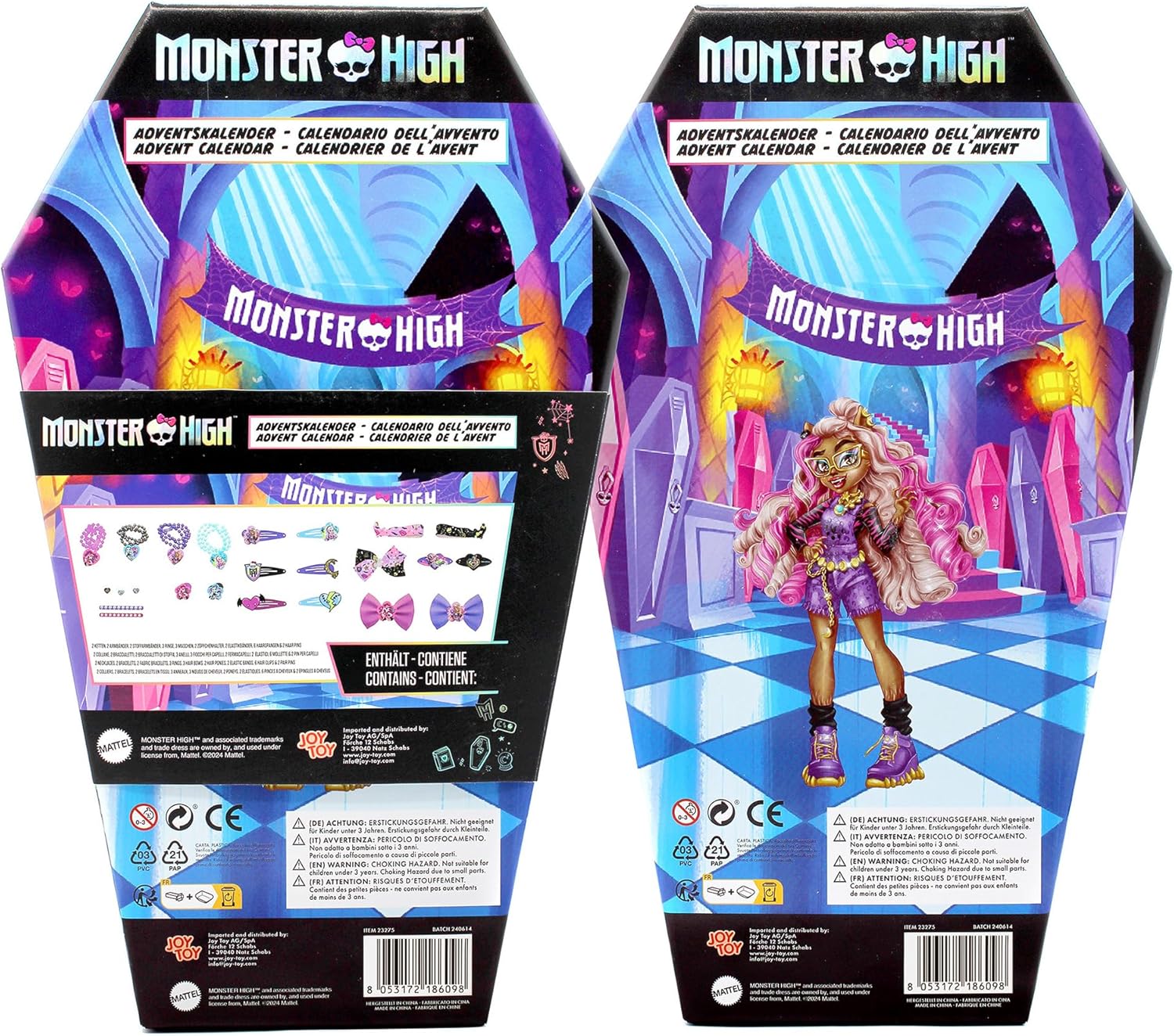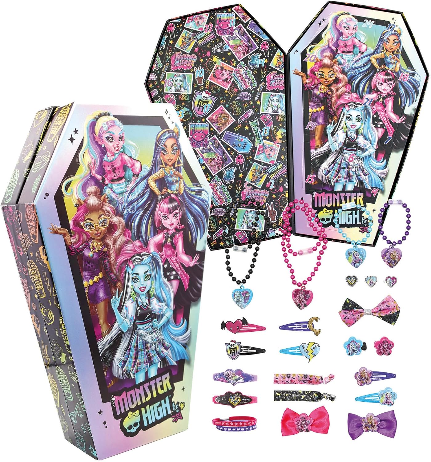 Calendario dell'Avvento Monster High con gioielli e accessori per capelli misure: 21x7x34 cm Contenuto: 2 collane di perle con pendenti, 2 braccialetti di perle con pendenti, 2 fasce per capelli, 2 braccialetti in tessuto, 3 anelli, 2 fermacodini con motivi, 6 fermagli per capelli in metallo, 2 fermagli per capelli in plastica, 1 punto per capelli, 2 punti per capelli glitterati Con il calendario dell'Avvento con accessori per capelli alla moda e vari gioielli, l'attesa fino al Natale diventa un'esperienza. Dietro ogni porta si nascondono oggetti interessanti che fanno divertire i bambini