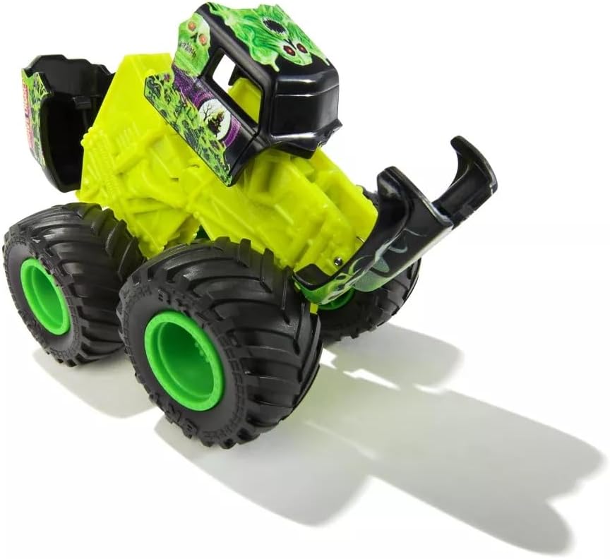 Azione realistica: guarda Grave Digger distruggersi e deformarsi all'impatto, quindi ripristinalo con un rapido tocco! Ripristina e riproduci ancora: non sono necessari attrezzi, basta premere verso il basso e sei pronto per ulteriori arresti anomali. Design unico: iconico look Grave Digger con telaio verde brillante e ruote fosforescenti. Collezionali tutti: parte della serie 01 – perfetto per costruire la tua arena Monster Jam personale. Sicuro e durevole: costruito resistente per bambini dai 3 anni in su; ideale per giocare al chiuso o all'aperto.
