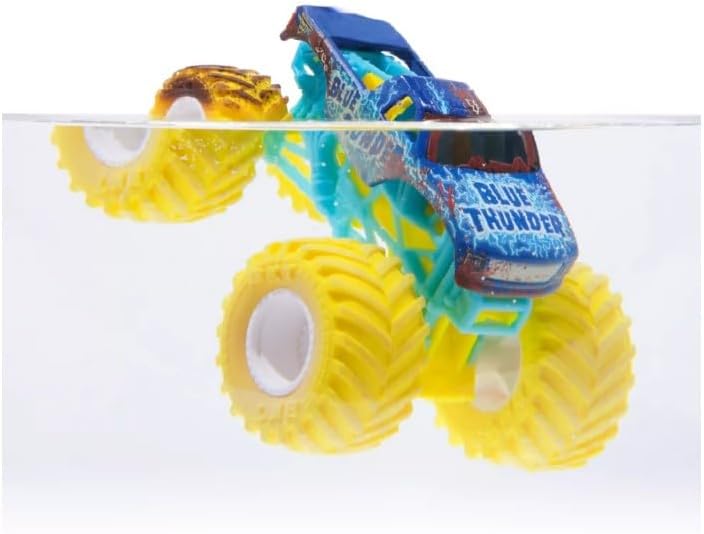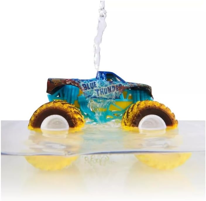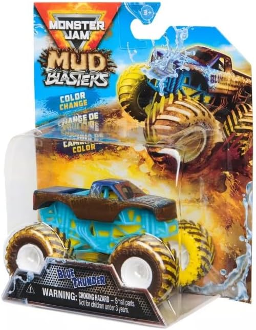Cambia colore: Monster Truck presenta una vernice speciale che cambia colore quando esposto all'acqua per un emozionante gioco di trasformazione Struttura pressofusa: realizzata con materiale metallico pressofuso resistente per prestazioni di lunga durata e dettagli autentici MONSTER WHEELS: pneumatici sovradimensionati e autentico stile monster truck perfetto per avventure fuoristrada e acrobazie Design da collezione: parte della collezione Monster Jam Mud Blasters Series 1, con l'iconico design Blue Thunder CARATTERISTICHE DI GIOCO: Compatibile con playset e tracce Monster Jam per possibilità di gioco estese