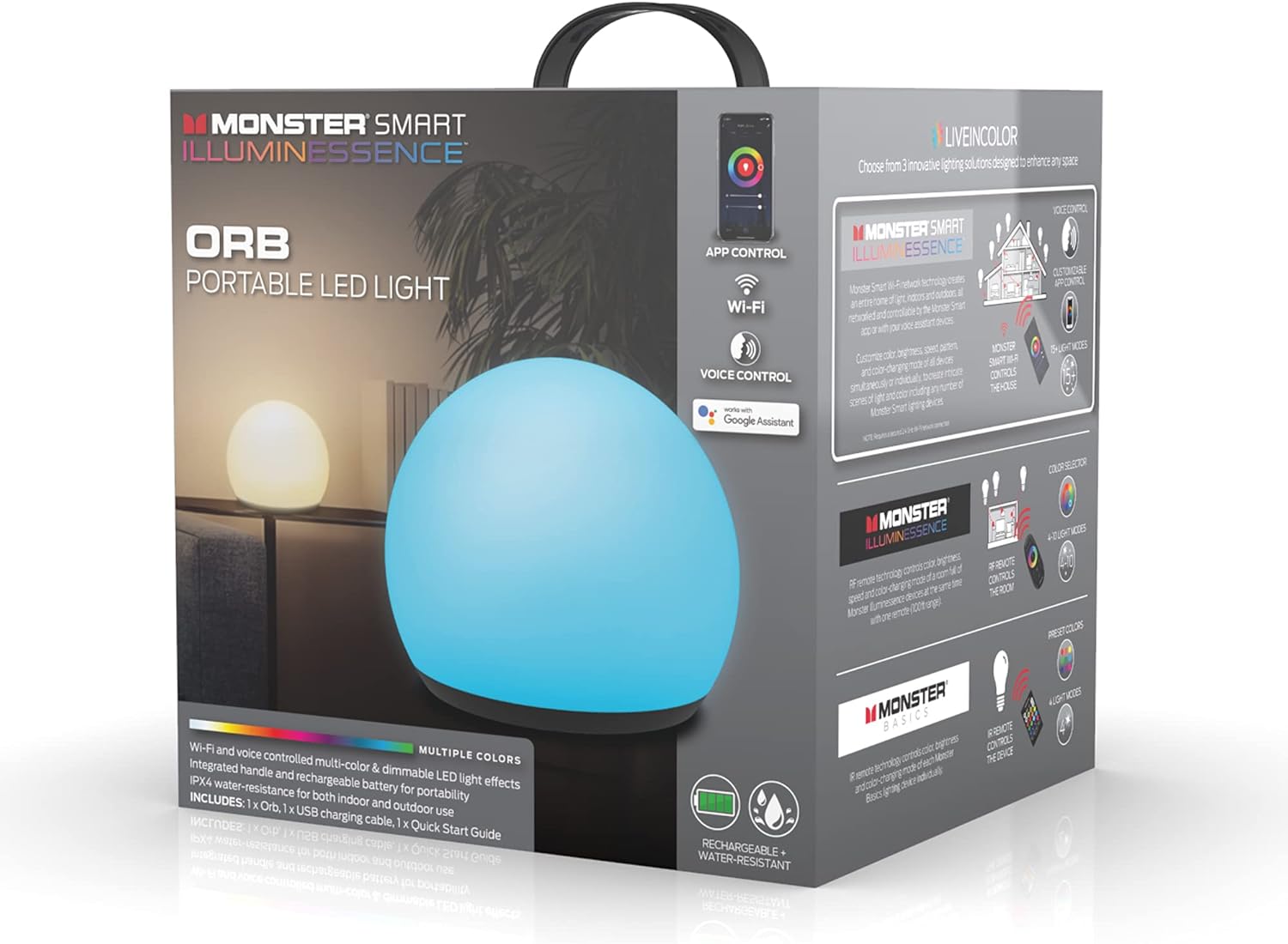 | Pièces incluses | 1 x Monster Illuminessence Smart Orb portable int/ext |