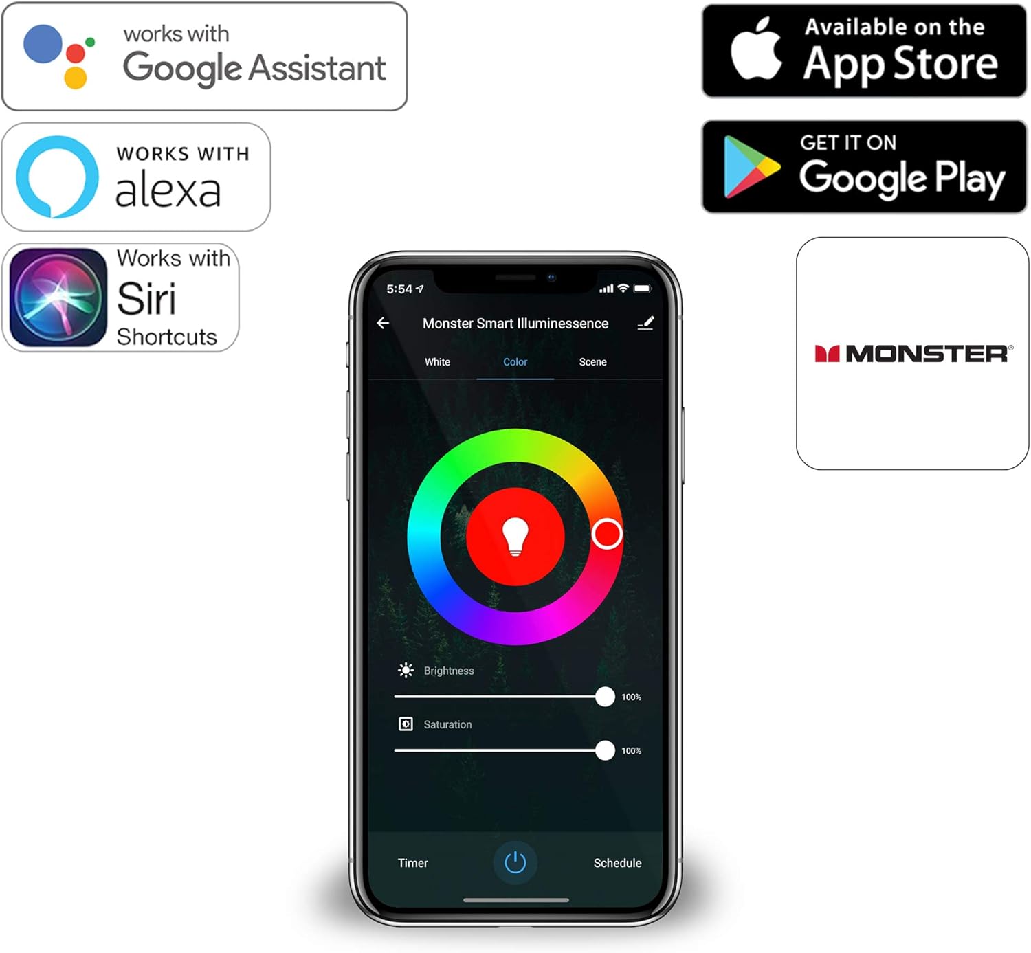 Per un'illuminazione unica: questa lampada a globo multicolore può essere utilizzata come lampada da tavolo, a sospensione o anche portatile, per interni ed esterni. La sua batteria offre 6 ore di autonomia con una sola carica Ampia personalizzazione: questo prodotto è collegato all'applicazione Monster Smart disponibile su App Store e Play Store che ti permette di andare ancora oltre creando modalità uniche e modificando la tua illuminazione come desideri Modalità di attivazione vocale: questa lampada d'atmosfera a LED funziona con Siri, Google Assistant e Amazon Alexa e ti offre un controllo completo e preciso della tua illuminazione, sempre adattato alle tue esigenze Contenuto del prodotto: in questa confezione ti verrà consegnato 1 globo luminoso, 1 cavo di ricarica USB e 1 guida rapida. Questo prodotto è pronto all'uso Prodotti ad alte prestazioni: leader mondiale nella produzione di apparecchiature per l'home entertainment, Monster si spinge oltre offrendo prodotti destinati all'illuminazione e alla personalizzazione degli spazi di lavoro multimediali