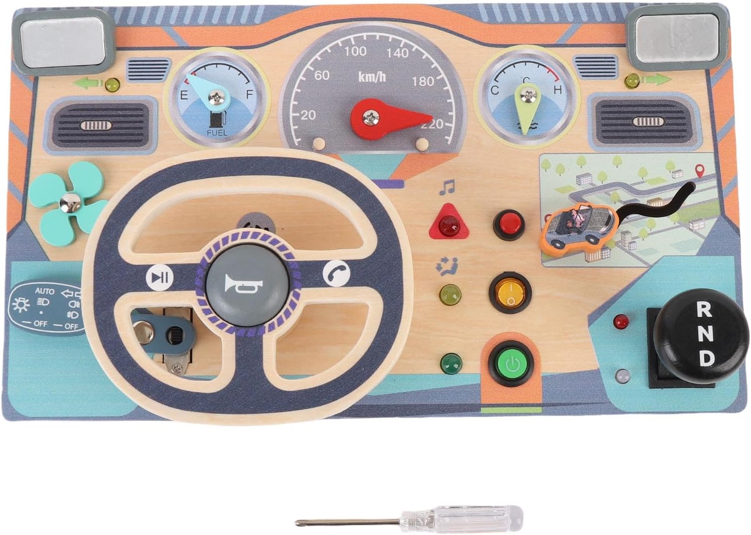 [Materiali in legno squisitamente realizzati] Questo giocattolo del volante di Montessori è meticolosamente realizzato in legno di alta qualità, garantendo una sicurezza e una durata eccezionali per i bambini piccoli. I bordi lisci e la finitura non tossica lo rendono per le mani da esplorare, mentre la robusta costruzione garantisce opportunità di divertimento e apprendimento del tempo di gioco. [Design accattivante per bambini] Con un design vibrante e accattivante, questo giocattolo del volante cattura istantaneamente l'attenzione dei bambini. I dettagli realistici e gli elementi interattivi incoraggiano il gioco fantasioso, permettendo ai bambini di immergersi nella gioia di guidare mentre sviluppano la loro creatività e le capacità motorie. [Multiple modalità di gioco educativo] Il nostro volante innovativo offre varie modalità di gioco coinvolgenti che promuovono lo sviluppo della prima infanzia. Attraverso il gioco interattivo, i bambini possono imparare a conoscere colori, numeri e concetti di base, migliorando al contempo la coordinazione occhio-mano, le capacità di risoluzione dei problemi e le capacità cognitive in modo divertente e stimolante. [Ideale per l'educazione della prima infanzia] Progettato da esperti educativi, questo giocattolo funge da strumento eccellente per le scuole materne e le scuole materne. Supporta i principi di apprendimento di Montessori incoraggiando l'esplorazione e la scoperta indipendenti, aiutando i bambini a sviluppare abilità cruciali attraverso il gioco pratico e le esperienze interattive. [Divertimento del volante simulato] Il design del volante realistico offre un'esperienza di guida autentica per i bambini piccoli. Completo di pulsanti interattivi e parti mobili, suscita scenari fantasiosi di gioco di ruolo nel consumo di consapevolezza spaziale, comprensione causa-effetto e abilità sociali attraverso il gioco cooperativo con colleghi o genitori.