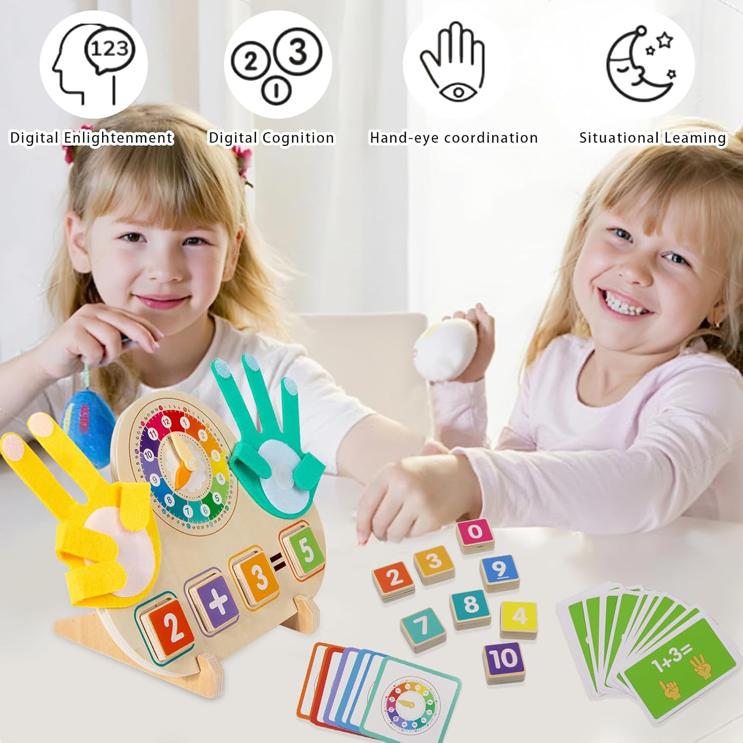 Giocattolo: il giocattolo matematico in legno è composto da una tavola di legno, 12 blocchi numerici in legno, 23 carte double face, 18 biglietti per appuntamenti, 2 tavole di supporto, 1 robusta tavola in legno e 2 palmi in morbido feltro. Questo giocattolo in legno rende l'apprendimento dei numeri, l'aggiunta e la sottrazione un'esperienza interattiva e divertente Giocattolo Montessori Multisensoriale Design: il giocattolo per matematica in legno per bambini è realizzato in legno e accuratamente lucidato e lavorato per garantire una superficie liscia senza sbavature. Colori vivaci e motivi chiari possono attirare l'attenzione dei bambini Abilità motorie fini: il nostro giocattolo di matematica in legno è dotato di dita pieghevoli per promuovere la coordinazione occhio-mano e le capacità di risoluzione dei problemi. Non è solo un giocattolo, ma anche un ottimo strumento didattico, adatto per bambini in età prescolare Gioco interattivo ed emozionante: il giocattolo educativo in legno per bambini consente ai bambini di risolvere compiti di matematica, riconoscere i numeri e contare con i contatori a forma di mano. Stimola la memoria, la creatività e l'apprendimento situazionale in un ambiente giocoso Regalo ideale: i palmi delle mani in feltro creano un elemento morbido e tattile che rende l'apprendimento ancora più pratico ed emozionante. Che tu sia genitori, nonni o insegnanti, questo aiuto di apprendimento con numeri è un regalo attento ed educativo per ogni bambino o bambino in età prescolare