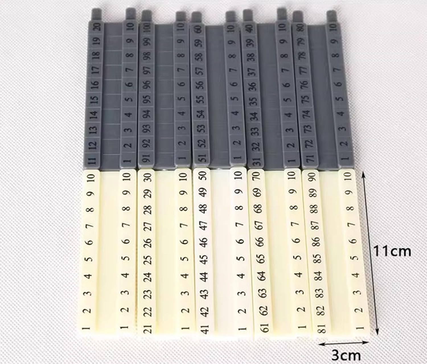 Set di quadrati da un centimetro: ogni pezzo è di 10 centimetri (circa 3,9 pollici) e ogni quadrato piccolo è di 1 centimetro (circa 0,4 pollici). Possono essere uniti insieme per l'uso. Obiettivo: Coltivare la capacità dei bambini di riconoscere i numeri, esercitare il loro pensiero logico, risolvere problemi e imparare a pensare in modo indipendente. Sicurezza: Superficie liscia e lucidata a mano senza sbavature. Per la sicurezza dei bambini, tutti gli angoli sono stati arrotondati. Materiale principale: plastica di alta qualità Dimensioni: 4,3 * 1,2 pollici. Età applicabile: 3 anni e oltre.