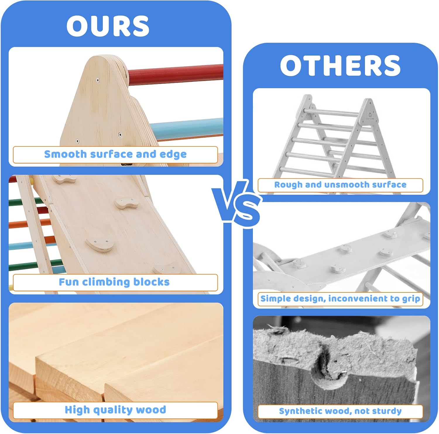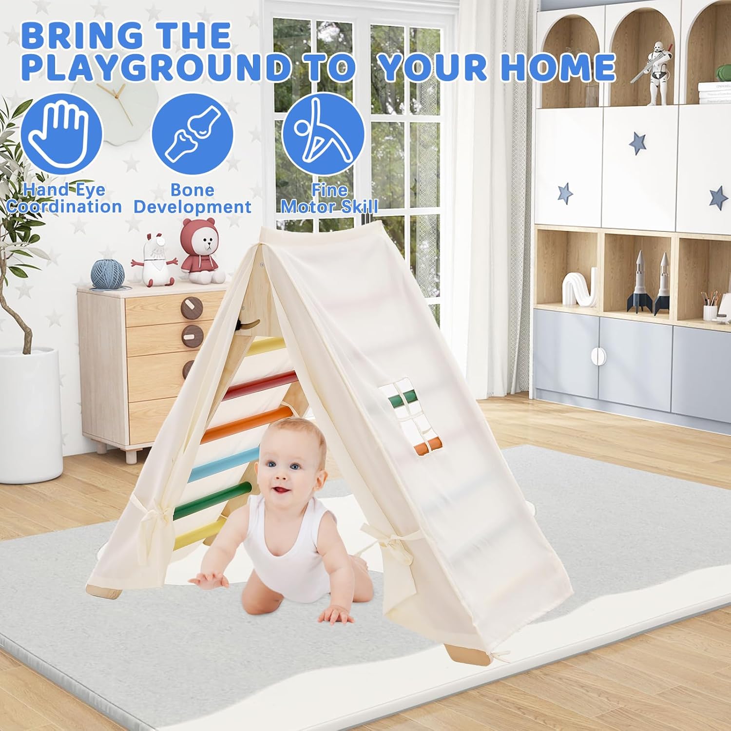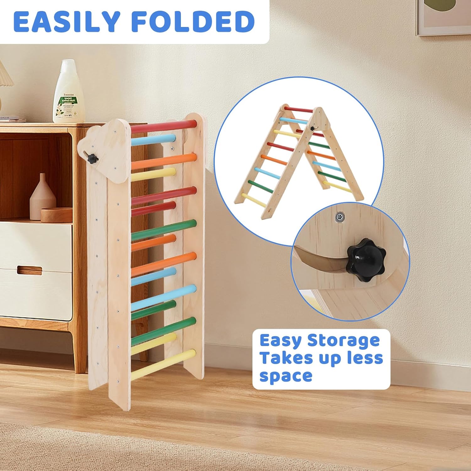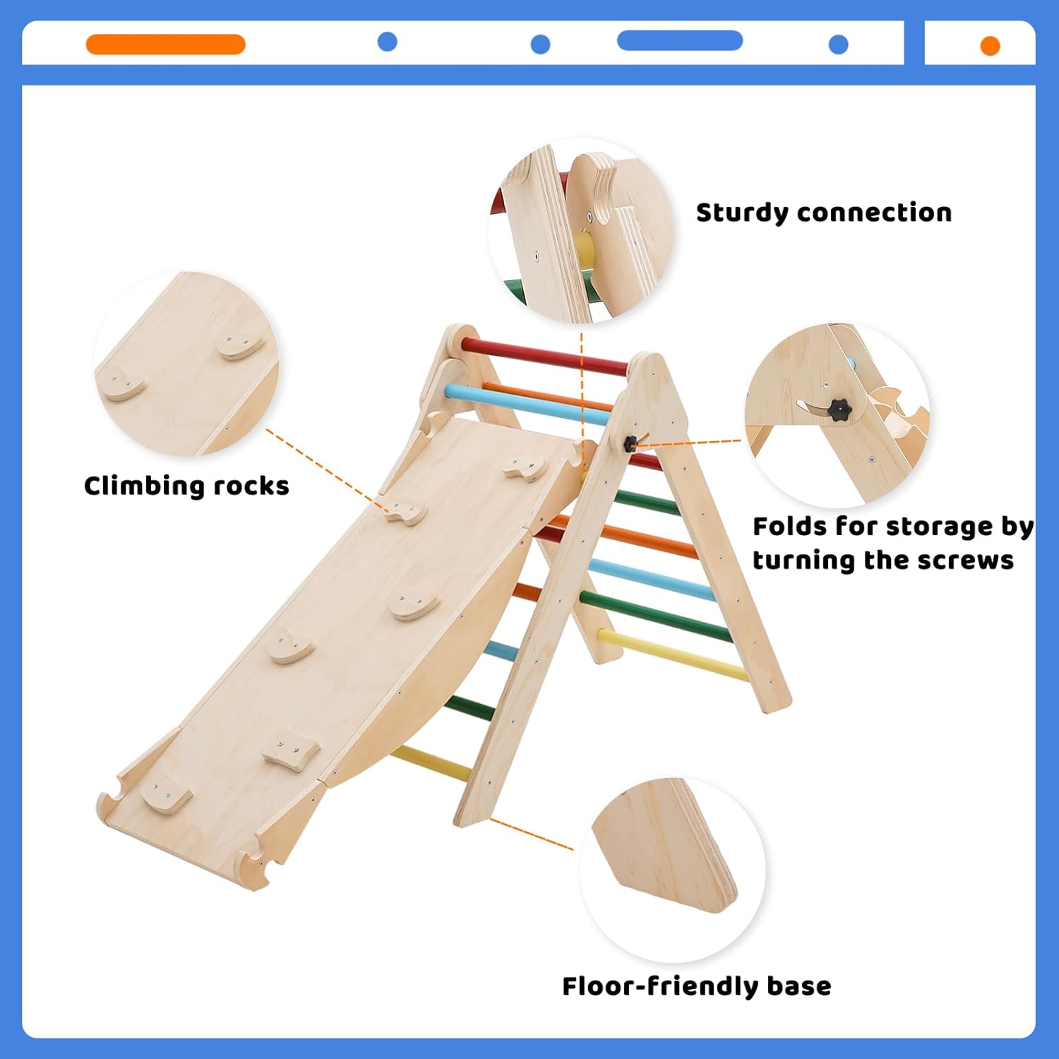 Legno sicuro e naturale: i giocattoli da arrampicata per bambini sono realizzati in legno massiccio naturale e inodore. Dispositivo di gioco interno per bambini Dopo diversi giri di levigatura e levigatura, i bordi sono lisci, arrotondati e non hanno bordi. La vernice spray sicura viene utilizzata per garantire la sicurezza dei bambini durante il gioco, in modo che i bambini si divertano e non debbano preoccuparsi. I genitori sono più a loro agio Giocattolo da arrampicata multifunzionale: questo giocattolo da arrampicata per bambini è composto da una struttura triangolare e una piastra spessa. Le tavole spesse possono essere utilizzate come skateboard e tavole da arrampicata. La tavola spessa ha due lati e può essere utilizzata come tavola da arrampicata e skateboard. Una varietà di modi di gioco creativi per promuovere il pensiero e l'indipendenza dei bambini. Questo parco giochi al coperto invita i bambini a scoprire. Aiuta i bambini a crescere. Robusto e durevole: la nostra struttura da arrampicata per bambini ha superato il test di carico e ha una capacità di carico massima di 180 libbre. Può consentire a 1-2 bambini di giocare insieme. Gli scivoli e le strutture da arrampicata sono realizzati in legno più spesso, quindi non si rompono o si danneggiano facilmente. Questo giocattolo da arrampicata può essere utilizzato a lungo e offre ai bambini una compagnia sicura e divertente. Facile da assemblare e dopo la vendita: il nostro kit Montessori da arrampicata viene fornito con strumenti e accessori nella scatola, in modo che tutti i componenti possano essere facilmente assemblati. Wenn Sie auf Probleme stoßen, können Sie sich gerne an uns wenden. Ti aiuteremo a risolvere il problema entro 24 ore. Pieghevole e facile da riporre: questa struttura da arrampicata per bambini dispone di un design pieghevole con due bottoni nella parte superiore. Rimuovere la vite inferiore ed è facile da piegare e riporre, adatto per lo stoccaggio quotidiano e il trasporto. Quando non viene utilizzato, puoi piegarlo e riporlo, risparmiando spazio prezioso in casa. Funzionalità innovative: la borsa 3 in 1 diventa un tetto della tenda, che stimola l'immaginazione e trasforma l'impalcatura in una accogliente grotta in cui il tuo bambino può nascondersi e vivere le proprie avventure.