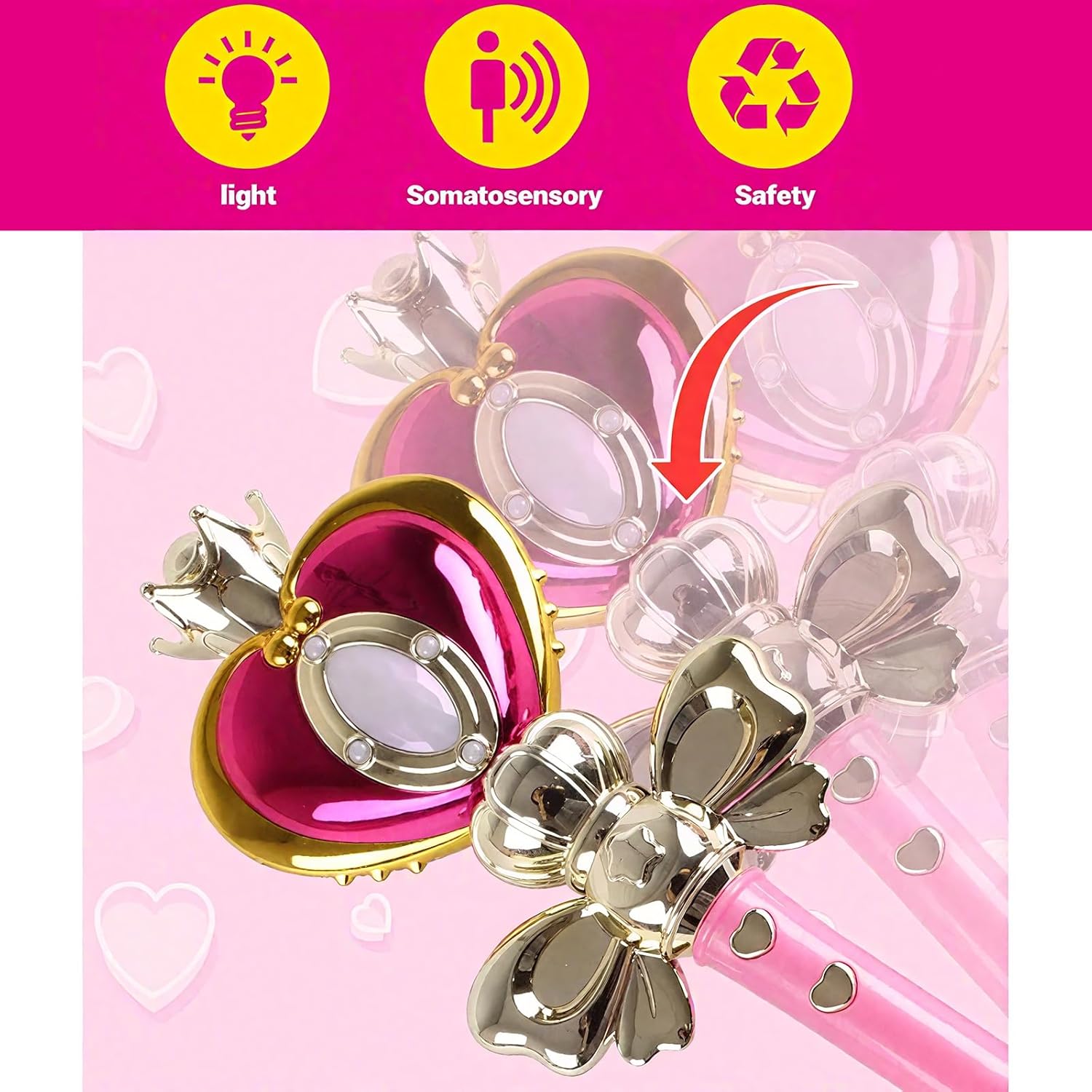 Magic Fairy Stick per bambini: il giocattolo con bacchetta magica porta gioia e raccolto illimitati. Giocattolo educativo: la bacchetta magica della fata favorisce lo sviluppo visivo e lo sviluppo dell'udito. Migliorerà anche le capacità di coordinazione degli occhi e delle mani dei bambini. Giocattolo musicale: le luci lampeggianti e la musica vivace del bastone musicale Sailor Moon rendono più facile attirare l'attenzione dei bambini. Manico lungo: il giocattolo musicale lampeggiante ha una maniglia abbastanza lunga da essere afferrata facilmente. Regali squisiti: la bacchetta magica Sailor Moon carina e squisita sono i migliori regali per i bambini.