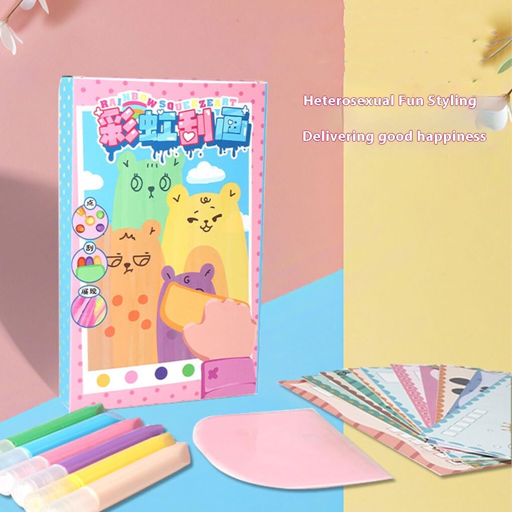 Rilascio della creatività: con il kit da disegno per bambini Squeegee Art, i bambini possono liberare al la loro creatività. Fornisci molteplici opzioni di gioco senza un metodo di raschietto fisso, consentendo alla creatività dei bambini di estendersi all'infinito e godersi il divertimento della pittura Creazione di capolavori: attraverso passaggi come far gocciolare la vernice, far scorrere un raschietto e aggiungere adesivi, i bambini possono creare splendide opere d'arte. L'arte dei graffiti arcobaleno non aiuta i bambini ad esprimersi, ma li rende anche orgogliosi delle loro opere La confezione include: set per pittura da grattare arcobaleno con tutti i materiali necessari, 20 fogli di carta, 1 adesivo, 7 tipi di vernice, 6 penne per acquerelli e 1 raschietto. Questi materiali consentono ai bambini di iniziare facilmente il loro banale percorso artistico Cartoline multifunzionali: il retro di queste decorazioni arcobaleno fai-da-te può essere utilizzato come cartoline. I bambini potranno scrivere sul retro le loro benedizioni o le loro storie e regalare questo pezzo Per unico agli amici, trasmettendo emozioni speciali Scelta : non è una piattaforma in cui i bambini possono liberare la loro creatività, ma anche la scelta migliore per fare regali squisiti. Che sia regalato a ragazzi o ragazze, può portare divertimento e sorprese infinite