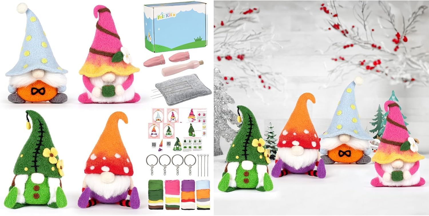 Per i giorni di pioggia, attività di legame familiare o semplicemente per un hobby rilassante, questo kit consente di creare bellissimi regali o decorazioni fatte a mano per ogni occasione. Fornisce grafici dettagliati e video completi, rendendo facile per chiunque creare i propri pezzi di feltro di lana. Realizzato in morbido e feltro, questo kit consente una facile modellatura e lavorazione di squisite bambole di feltro. Bambole gnomi di Natale con questo kit di feltro. Questo kit per infeltrimento ad ago è adatto a tutte le abilità