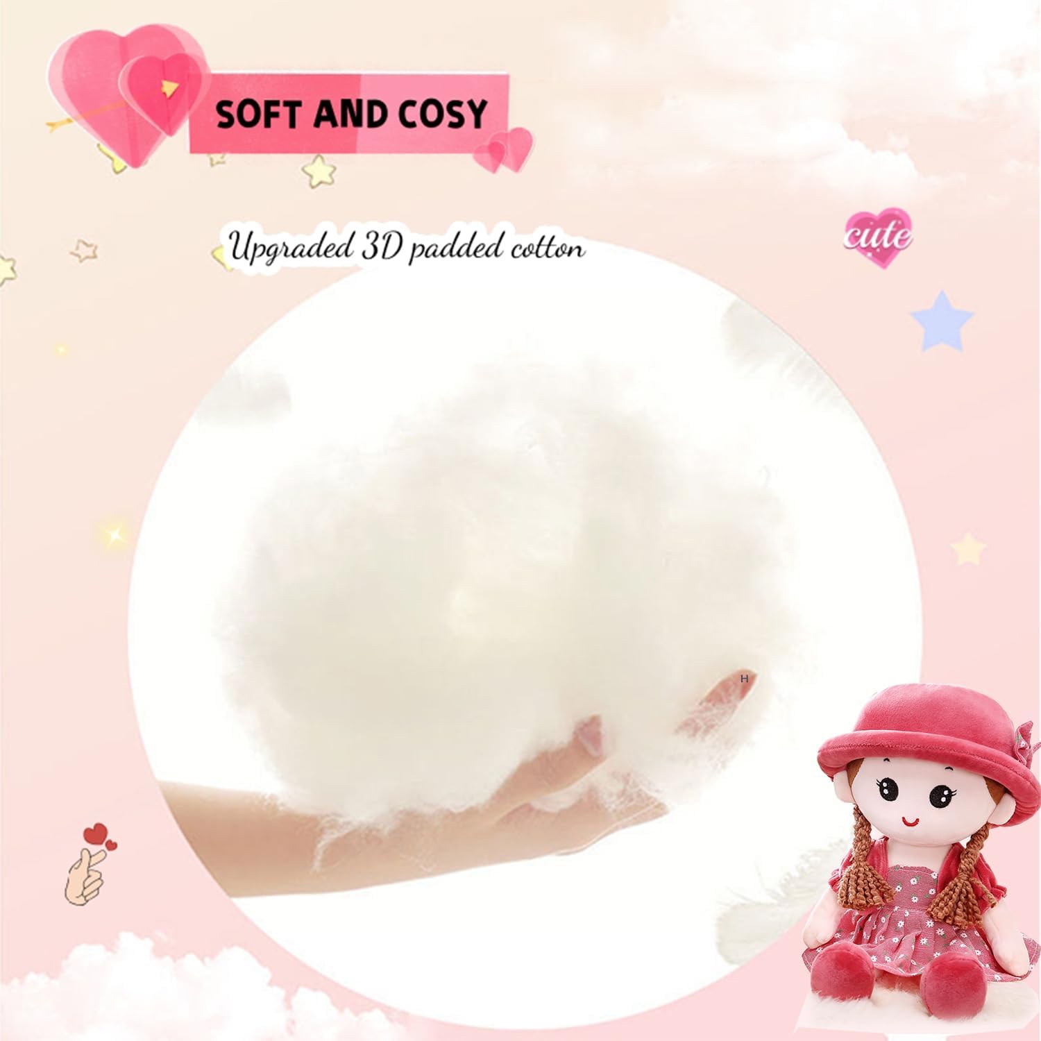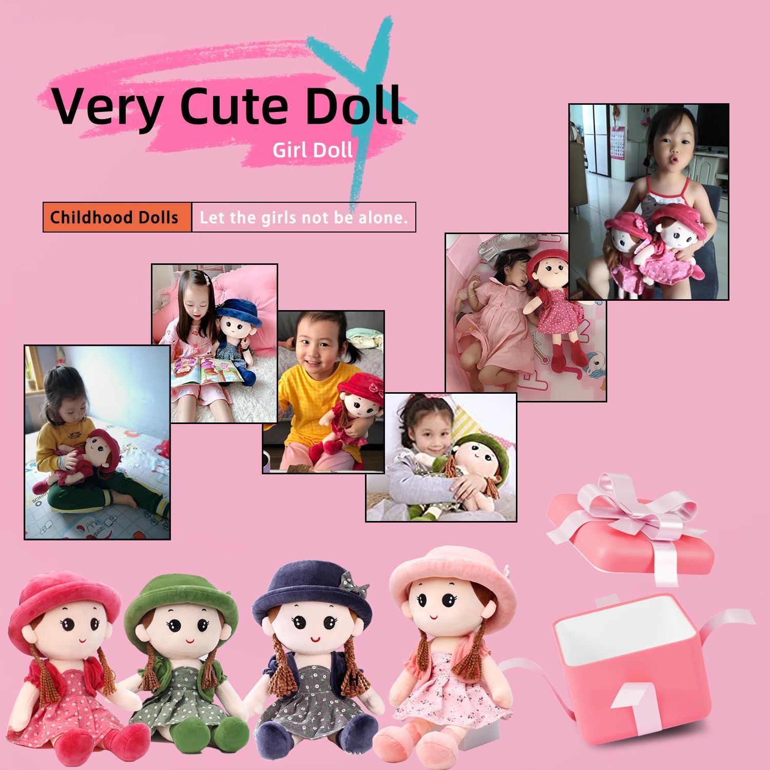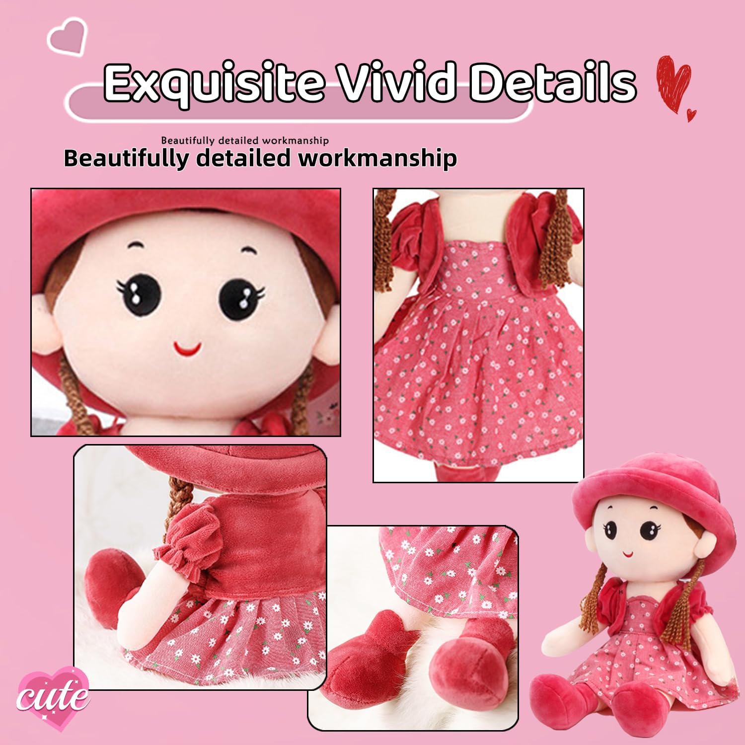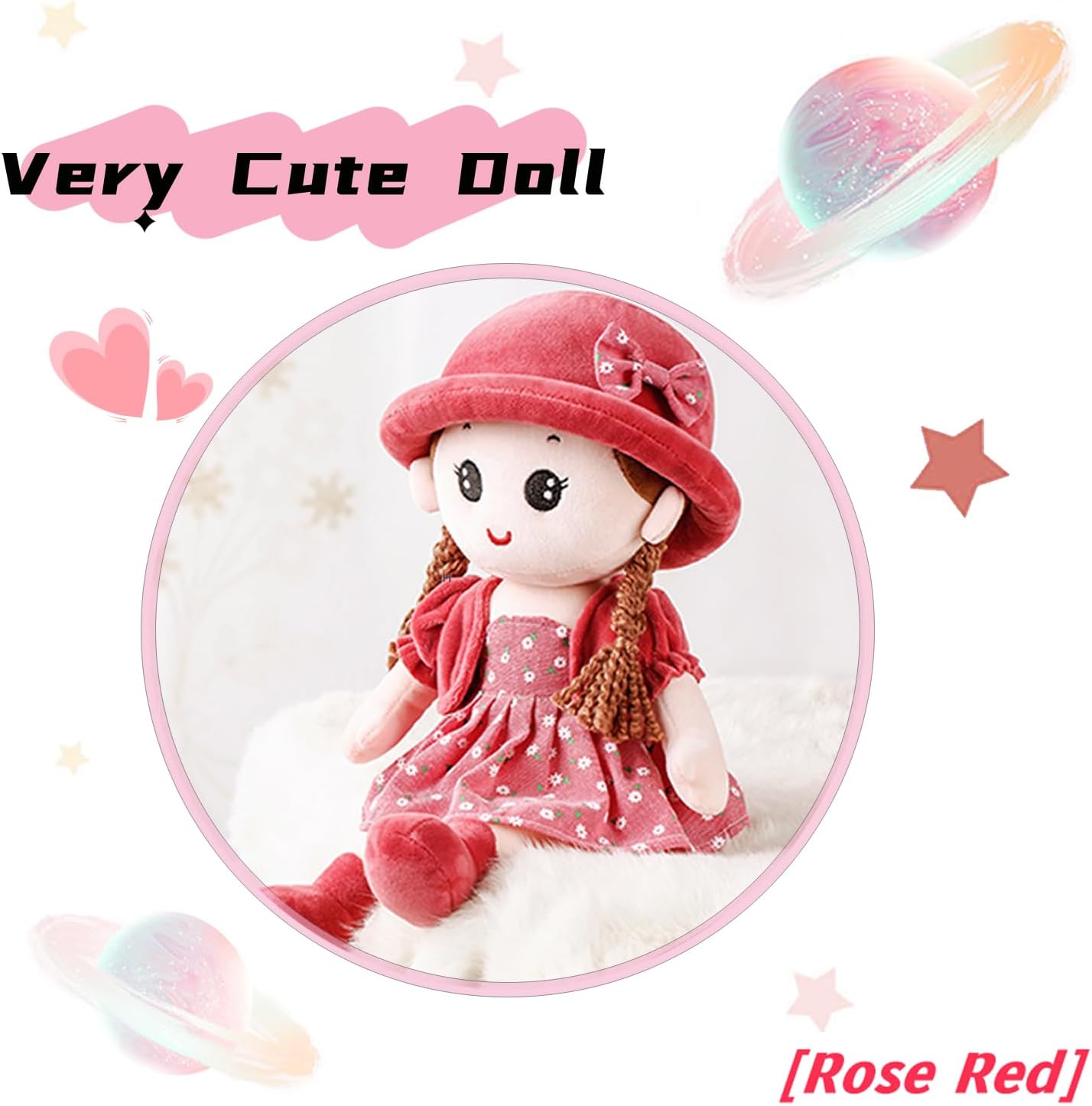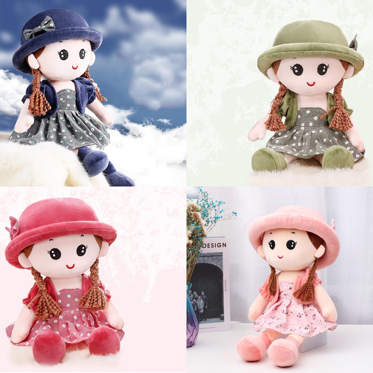 Morbido giocattolo per bambole: tessuto peluche di alta qualità e cotone PP, morbido, soffice, confortevole, sicuro, delicato sulla pelle, squisito e non deformato, comodo al tatto e completamente ipoallergenico, il miglior peluche per ragazze, adatto a bambini e ragazze di età superiore a 1 anno. Bambola di stoffa realizzata in peluche e cotone di alta qualità, interno imbottito in cotone PP, tocco morbido e confortevole e aspetto elegante e bello. Stile bambola carino, espressione facciale vivida, con trecce spesse, abbina una bella scenetta, indossa un cappello che sembra bello, realistico e attraente. Il vestito e il cappello della bambola possono essere rimossi e lavati a mano o in lavatrice. Amico di bambine: l'adorabile mini bambola di pezza aiuta le bambine (e i ragazzi) a sviluppare un vero senso di compagnia. Gli terrà compagnia quando saranno soli e li aiuterà a sentirsi sicuri, protetti e persino pronti a dormire. Lunghezza 35 cm, dimensioni ridotte per un comodo trasporto ovunque. REGALO PERFETTO: questo simpatico ed elegante regalo per bambole è adatto per compleanno, Natale, decorazioni di nozze, forniture per feste, decorazioni per la camera dei bambini, decorazioni per la casa.