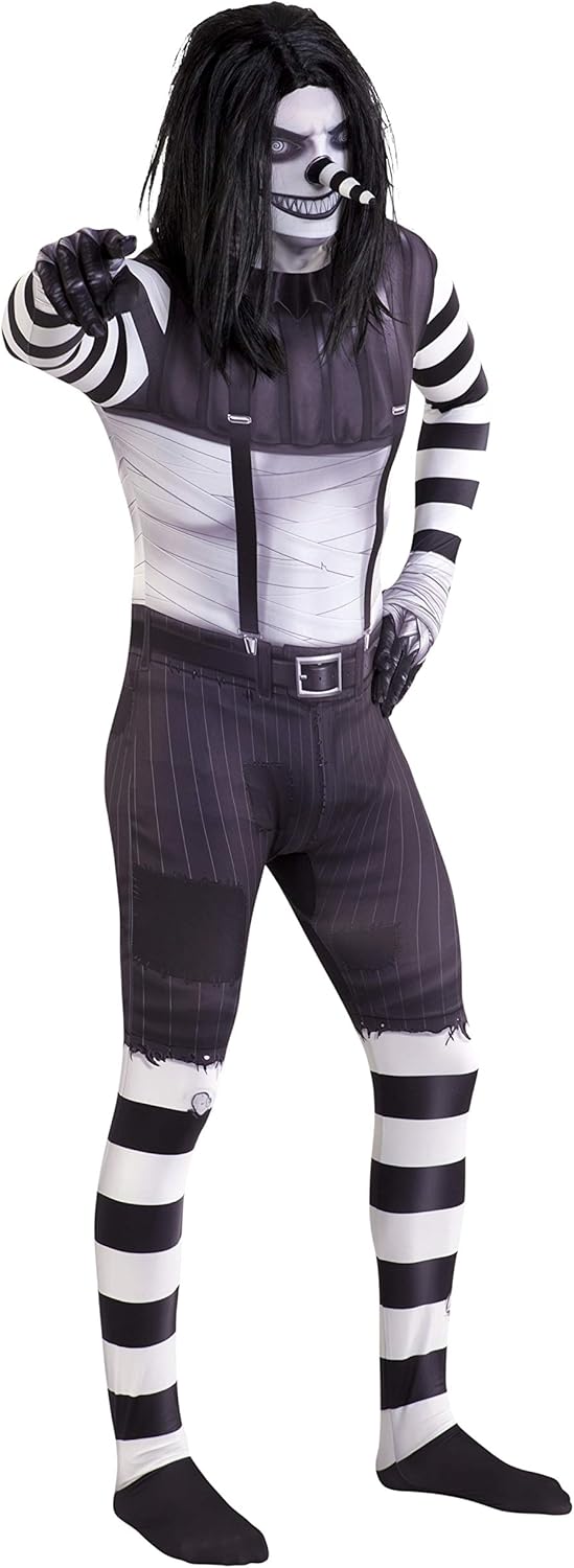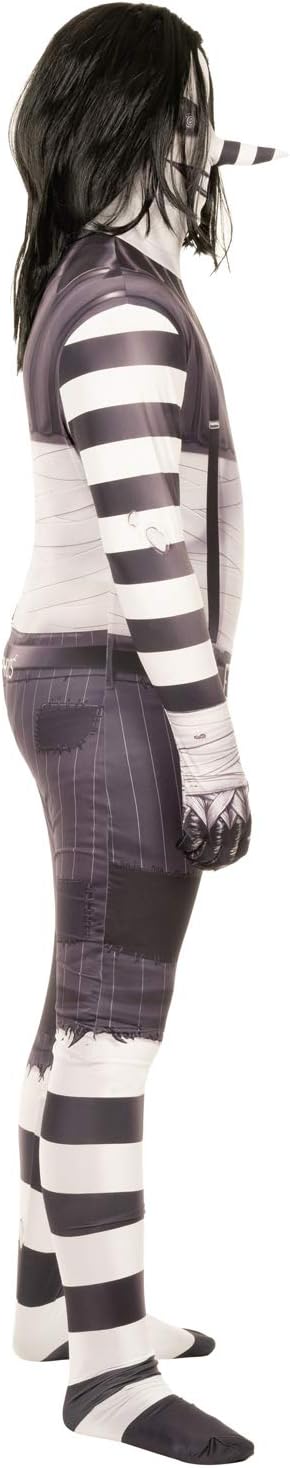 El disfraz la verdad que está muy chulo, es un mono de pies a cabeza y queda muy ceñido. La única pega es que la visión es complicada, pero un par de pequeños agujeros en la zona de los ojos y listo!.