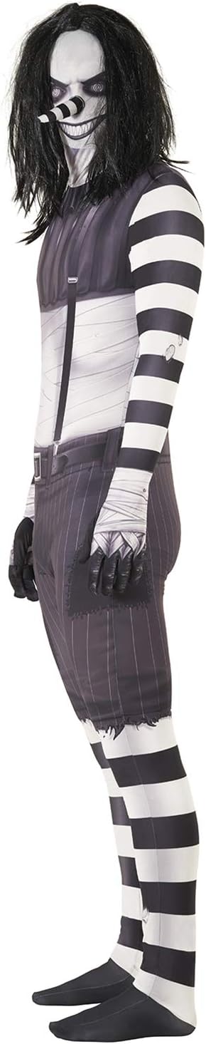 Great costume, looks better than shown, scared the wife,Ha,ha,ha!! Use the recommended sizing method, the costume fits perfectly. Would recommend and would definitely be buying again if I need another costume. With that said here are 2 things I did not like,.....The fabric restricts air flow when breathing ( but you can breathe) and the fabric gets wet fast when exhaling. Vision is reduced to just shadows and it will cause problems and could become a safety issue. I bought this for a Halloween party in October, I’m going to make some adjustments to it by burning small holes where the eyes are so I can improve my vision. To improve the Mouth area breathing, I used a very large size needle and punctured the fabric near the mouth area to make holes so air can come in and exhale easier, other than that, it’s an excellent costume. Highly recommend.
