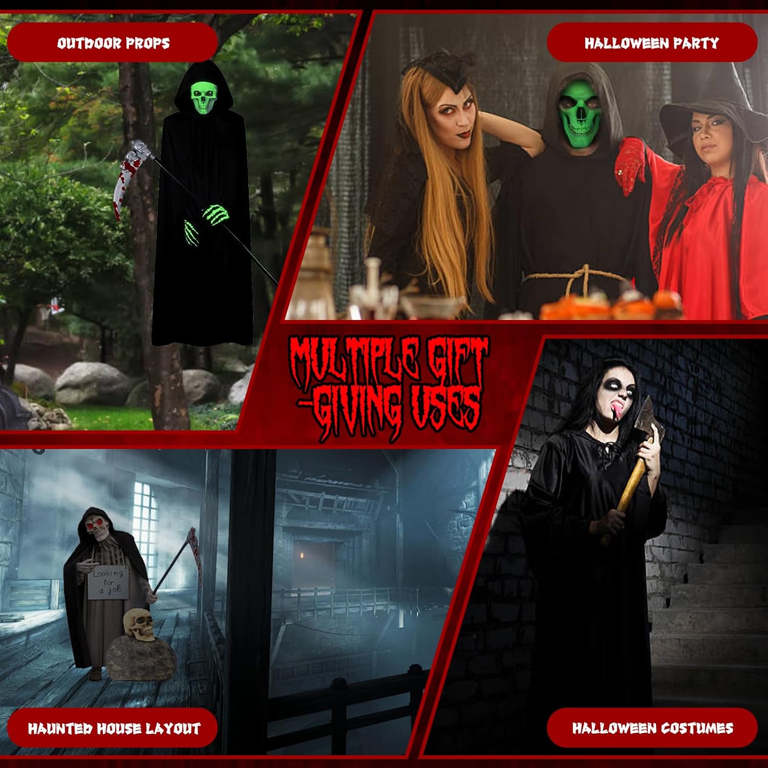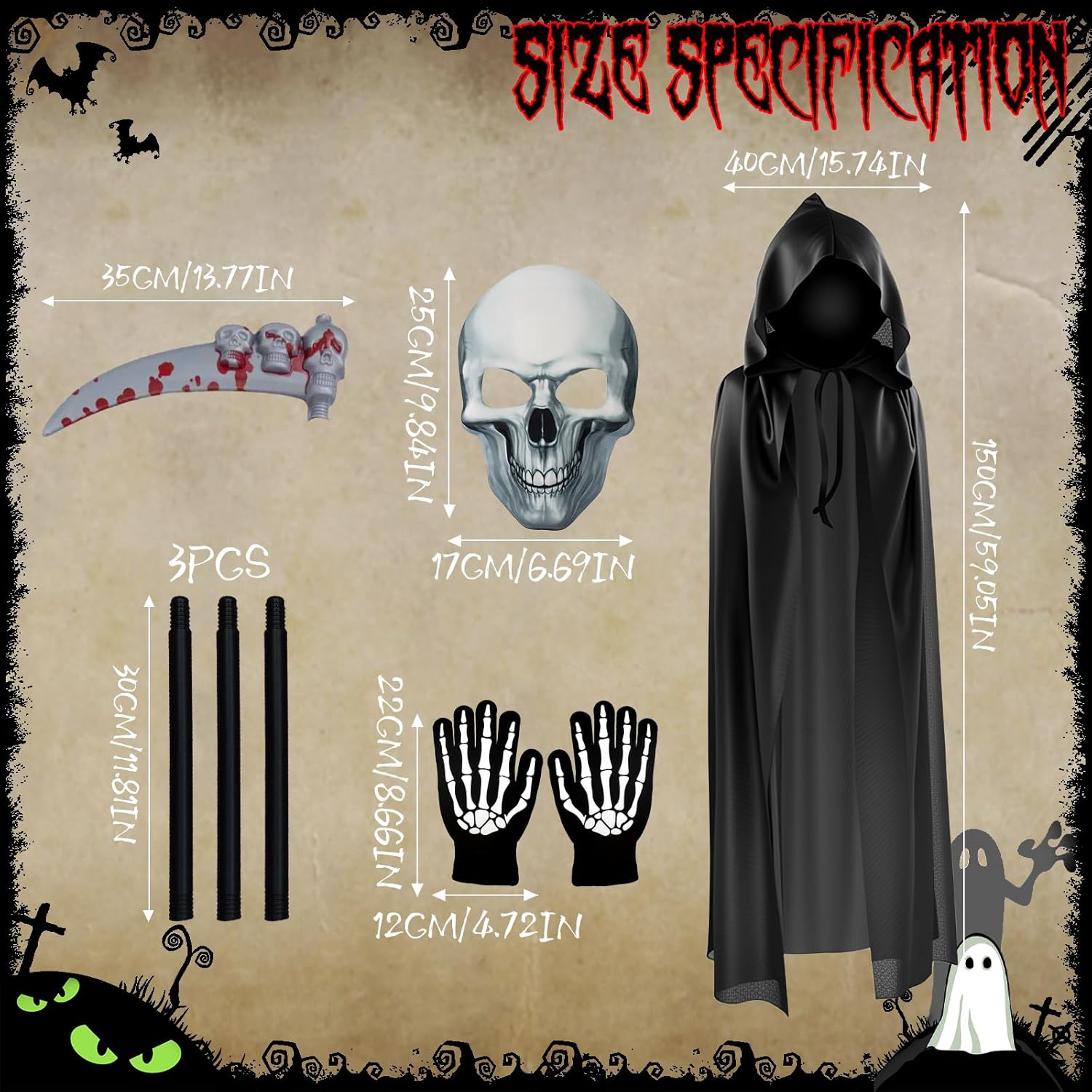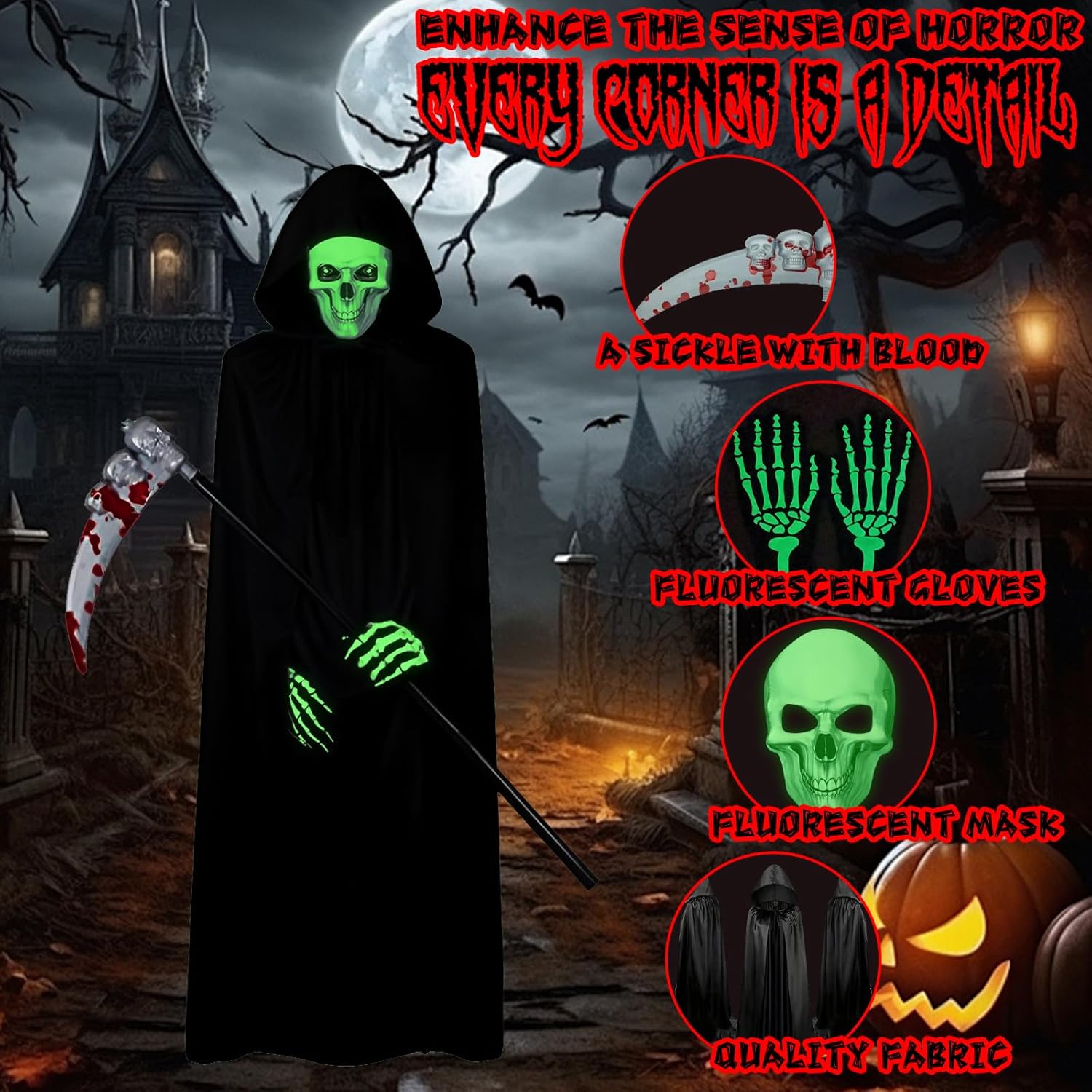 Descrizione prodotto Costumi halloween donne, Costume da Grim Reaper, Vestiti halloween adulti, Costume di Halloween da uomo, Regalo di Halloween, Costume carnevale uomo Caratteristiche del prodotto: 1. Costume Halloween: trasformati nel Signore della Notte con un abbagliante look da Grim Reaper! Progettato per chi cerca un'esperienza visivamente sbalorditiva e immersiva, questo set è perfetto per Halloween, cosplay, feste a tema e altro ancora. Specifiche del prodotto: - Nome del prodotto: Costume scheletro - Quantità: 4 Pezzi - Utilizzo: Feste di Halloween, Escape room, Decorazioni natalizie, Spettacoli teatrali Note: 1. A causa della misurazione manuale, il prodotto potrebbe variare leggermente dal prodotto reale. 2. A causa dei diversi monitor e delle diverse luci, i colori potrebbero variare leggermente. Garanzia di servizio Per qualsiasi domanda sui nostri costumi da Grim Reaper, non esitate a contattarci. Avviso di sicurezza Non adatto ai bambini