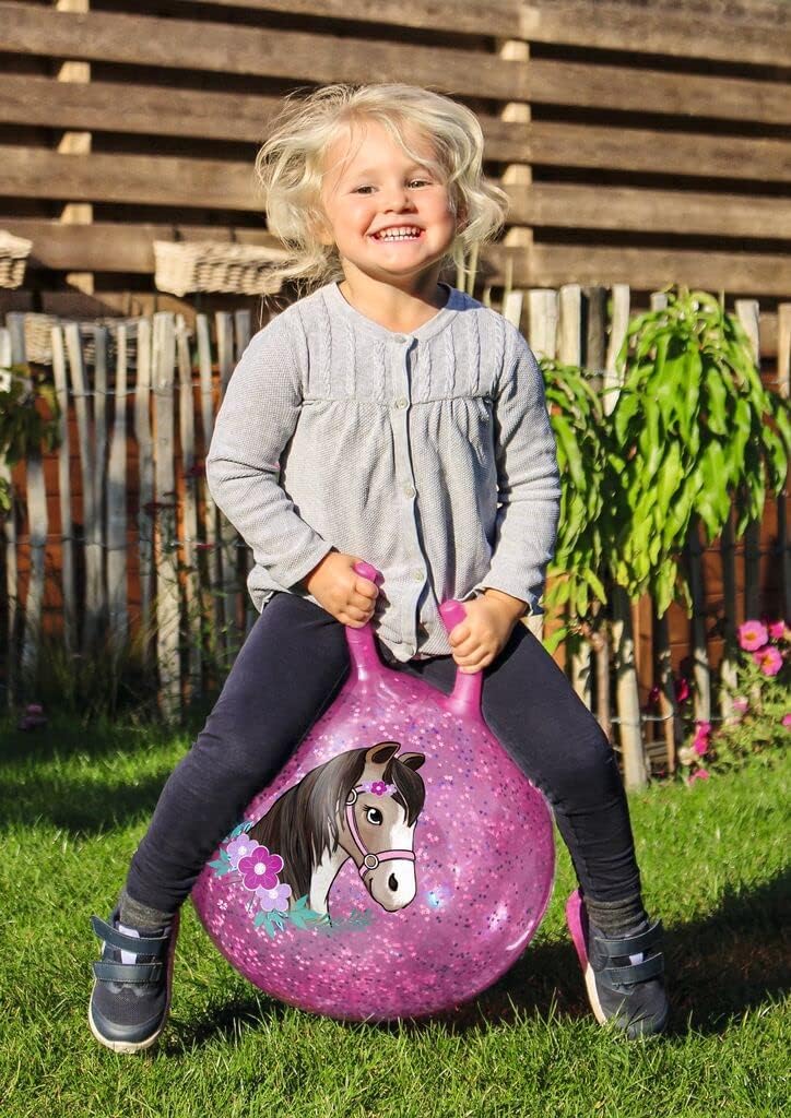 Dolce giocattolo gonfiabile ✓ Il ripieno di stelle di coriandoli colorati e la bellissima stampa a forma di simpatico pony fanno sorridere i volti dei piccoli amanti dei cavalli e li invitano a fare un giro insieme. Attività indoor e outdoor ✓ Sia nella cameretta dei bambini, in giardino o nel parco, la palla rimbalzante in plastica di alta qualità può essere utilizzata per giocare sia all'interno che all'esterno. Giocattolo di coordinazione ✓ Rimbalzare e saltare sulla palla tramoggia allena i muscoli dei bambini e allena la coordinazione giocosa, l'equilibrio e la destrezza - adatto a partire dai 4 anni Divertimento rimbalzante sicuro ✓ Le piccole scanalature sui manici della palla gonfiabile garantiscono una presa ottimale durante il rimbalzo e impediscono al bambino di scivolare via dalla palla - diametro ca. 38 cm Idea regalo creativa ✓ Con il brillante ripieno di coriandoli e il magico design del cavallo, la palla gonfiabile è il regalo ideale per compleanni, Pasqua, Natale o come souvenir per gli appassionati di cavalli