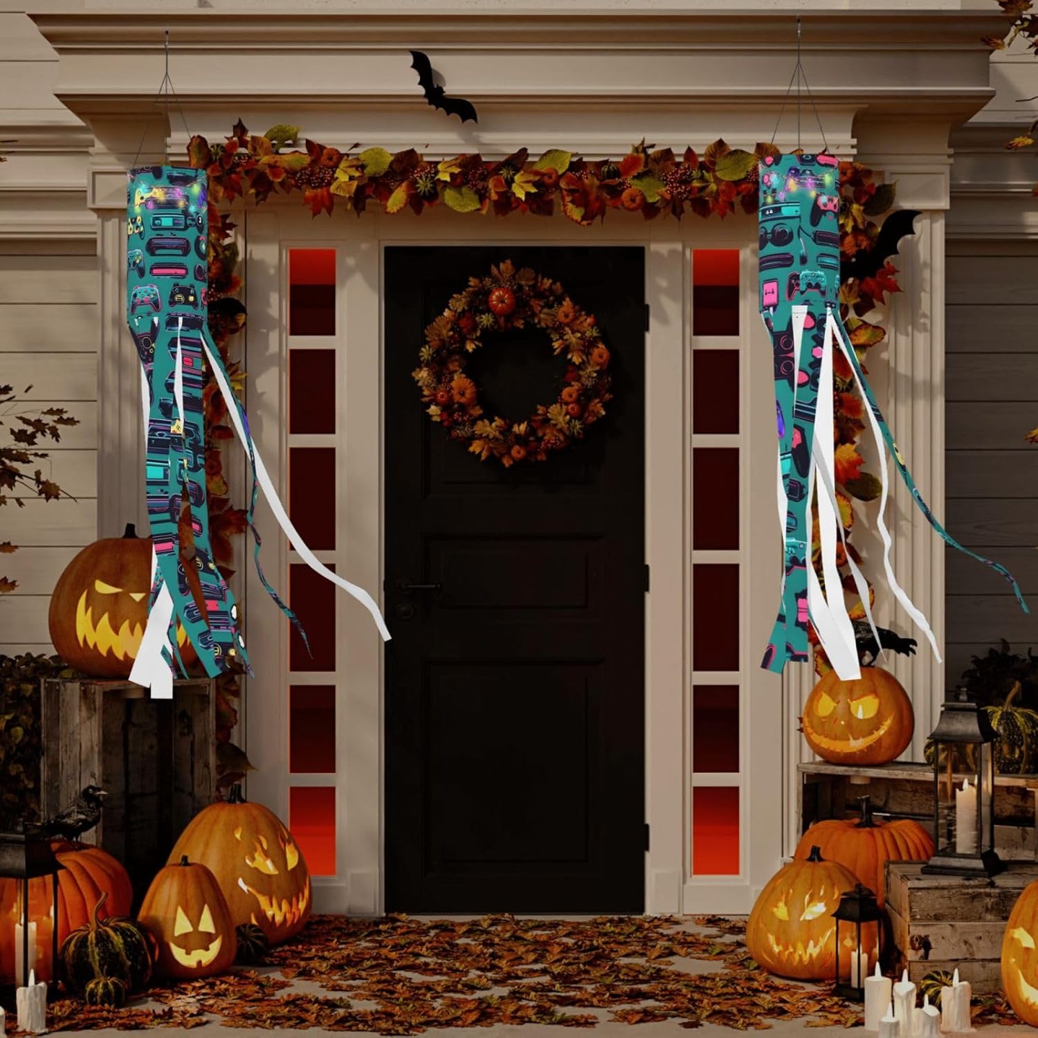 Realizzate con materiale leggero e arioso: le nostre calze a vento sono realizzate in poliestere leggero e svolazzante, progettate per un'asciugatura rapida e un volo ventilato, creando uno splendido display dinamico con le loro nove code. Ideale per tutte le feste: queste calze a vento sono perfette per Halloween, Natale e altre vacanze. Aggiungeranno un fascino accattivante a giardini, strade, parchi giochi, aperture di eventi e altro ancora. Costruzione intelligente degli accessori: misura 102 cm di altezza e 15,4 cm di larghezza, queste calze a vento hanno un'asta di supporto integrata e un connettore di tipo A sulla corda di nylon a tre lati lunga 40 cm per appenderlo in modo sicuro e facile. Illuminazione opzionale: scegli tra la nostra versione con una deliziosa stringa di luci a LED colorate per uno spettacolo notturno scintillante o la versione non illuminata per un elegante display diurno. Istruzioni per la cura: per mantenere il loro fascino vivace, queste calze a vento devono essere lavate a mano e asciugate all'aria naturalmente. Si sconsiglia di lavare in lavatrice e candeggiare.