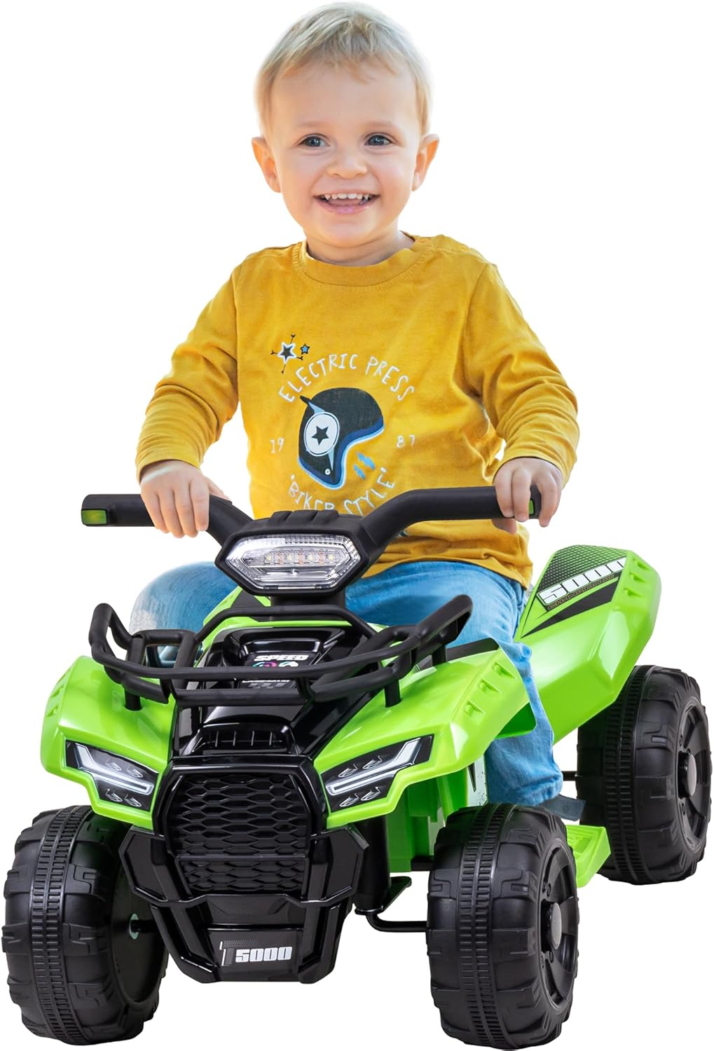 Tipo di prodotto: moto elettrica per bimbi Caratteristiche: motore DC12 V/ 34 W, pattini laterali, cruscotto con pannello multimediale dotato di porta usb e lettore mp3, tasti per musica e clacson, luci, batteria ricaricabile e caricabatterie. Dimensioni: 108x43x68 cm Limite peso: 30 kg Età consigliata: 3-8 anni
