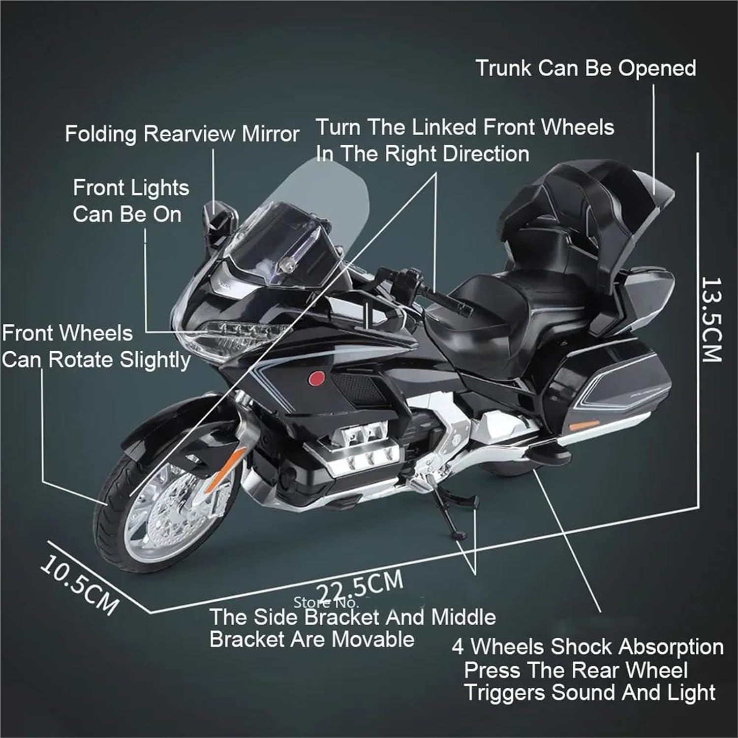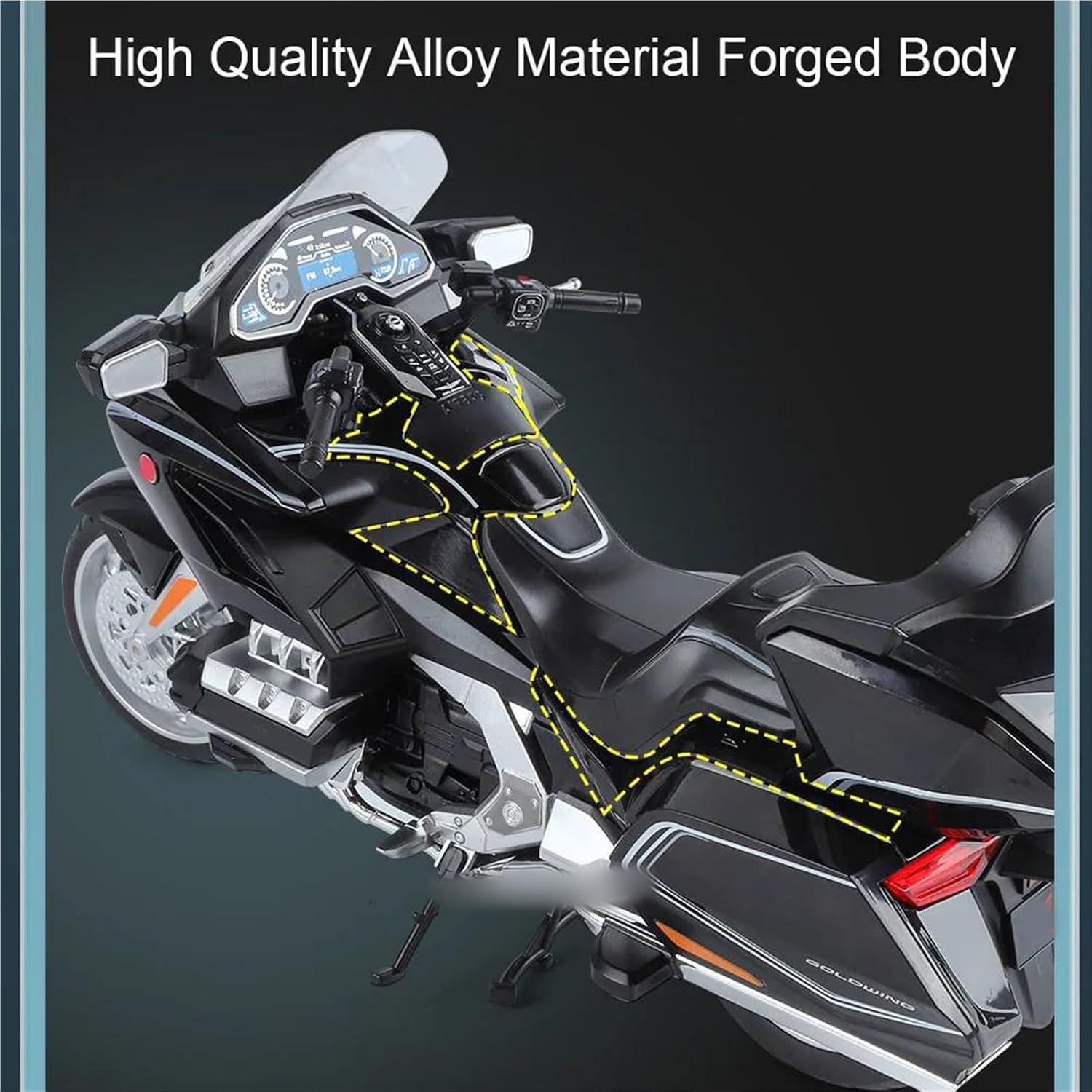 Modello di moto giocattolo, materiale: corpo in metallo zincato + telaio in ABS + pneumatico in gomma Il coperchio del vano posteriore può essere aperto, con suono e luce, assorbimento degli urti delle ruote, forte e durevole Il modello di moto è un modello squisito realizzato in stretta conformità con la forma, la struttura, il colore, gli interni e altre proporzioni del veicolo originale. È un modello in miniatura del veicolo originale ed è progettato per riprodurre l'aspetto del veicolo originale. Modello di auto di simulazione La finitura liscia e senza sbavature e la vernice lucida e uniforme dimostrano una maestria artigianale eccezionale. Questo modello incarna lo stile di una motocicletta, soddisfacendo l'amore degli appassionati per i modelli nostalgici.