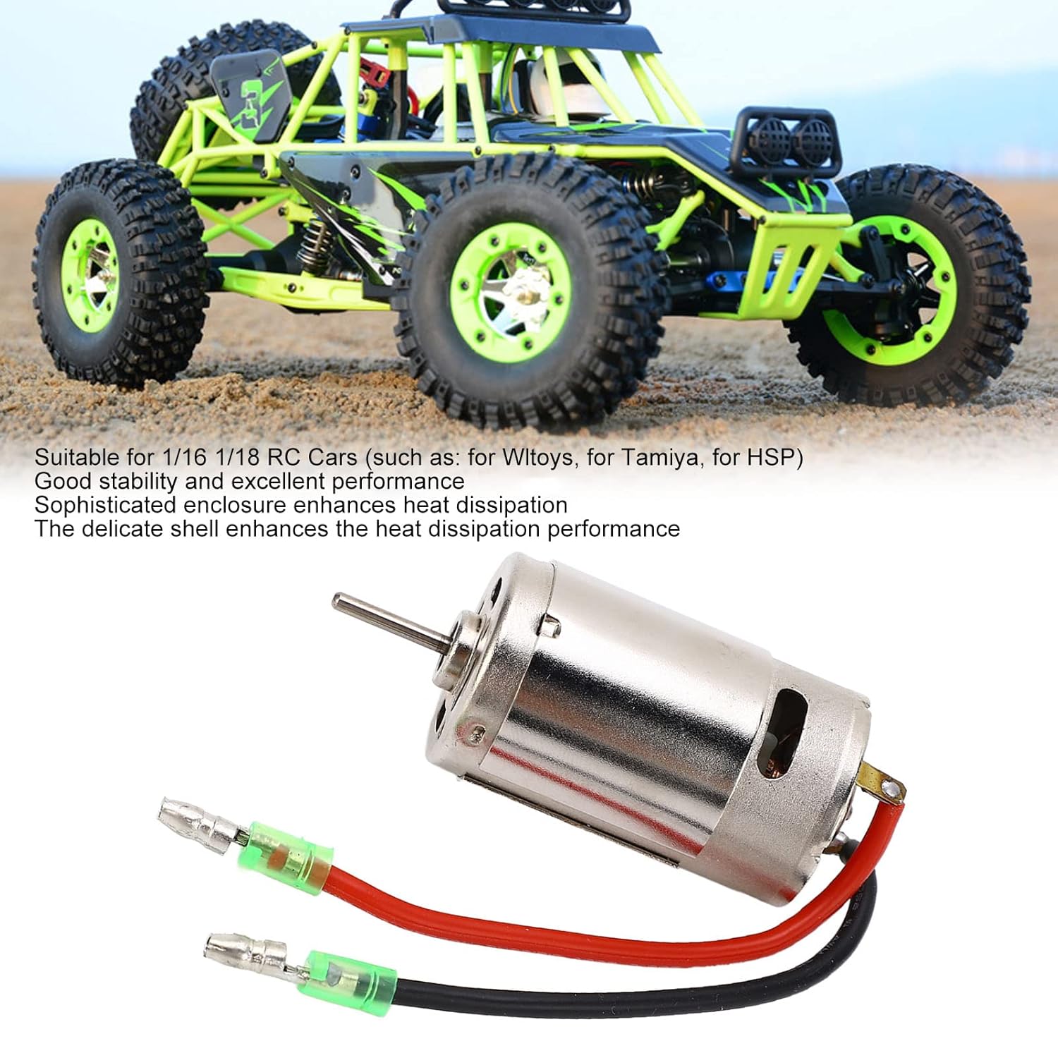 ALTA COMPATIBILITÀ: La dimensione del motore della spazzola elettrica è 46,5 x 27,5 mm, con una lunghezza dell'albero di circa 15 mm/0,6 pollici e un diametro dell'albero di circa 2,3 mm/0,09 pollici, adatto per auto telecomandate 1/16 1/18, verificare se è adatto prima di decidere di acquistarlo. alta temperatura, basse vibrazioni, basso rumore ed alta efficienza e raggiunge la massima conversione di potenza BUONA FUNZIONE DI DISSIPAZIONE DEL CALORE: Il corpo raffinato del regolatore di velocità del motore migliora le prestazioni di dissipazione del calore con una buona stabilità e prestazioni eccellenti, che possono proteggere il circuito interno, evitare sovraccarico termico, garantire un uso a lungo termine e soddisfare le vostre esigenze FACILE INSTALLAZIONE E RIMUOVERE: Il motore a spazzole 390 è facile da installare e rimuovere e può essere sostituito o aggiornato con il motore originale. Può essere installato rapidamente senza sprecare troppo tempo ed energia MATERIALI IN FERRO E RAME: Il motore a spazzole 390 è realizzato in materiali di ferro e rame, con struttura ad alta resistenza, compatta e robusta, eccellente resistenza all'usura, prestazioni stabili e non è facile da deformare o rompere, garantendo un uso a lungo termine