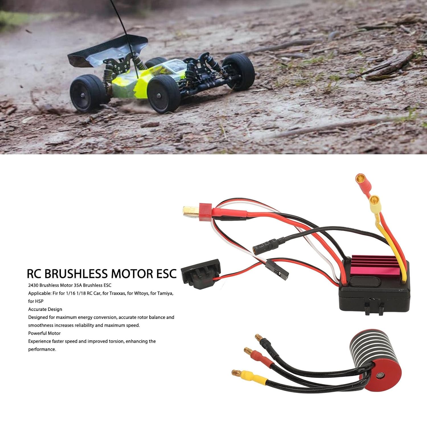 [Aggiornamento ad alte prestazioni] Aumenta la velocità e la corrente della tua auto RC con questo motore brushless 2430 e la combinazione ESC da 35 A. Progettato per la massima conversione di energia e un funzionamento regolare, questo kit offre fino a 50000 giri/min per prestazioni entusiasmanti. per gli appassionati che cercano un vantaggio in velocità e affidabilità. [Durevole e di lunga durata] Realizzato in lega di alluminio e rame ad alta resistenza, questo set ESC con motore brushless è stato costruito per resistere a un uso rigoroso. La struttura robusta garantisce longevità e lo rende affidabile per gli automobilisti e gli hobbisti abituali. [Ampia compatibilità] Questo versatile set ESC con motore brushless si adatta alle auto RC 1/16 e 1/18 delle migliori marche come Traxxas, Wltoys e HSP. Che tu stia aggiornando o sostituendo, questo kit offre un'integrazione perfetta per una varietà di modelli. [Progettazione di precisione] Sperimenta una precisione senza pari con un motore progettato per un bilanciamento e una scorrevolezza ottimali del rotore. L'ESC da 35 A garantisce un'erogazione di potenza efficiente e migliora sia la velocità che il controllo per un'esperienza di guida RC superiore. [Facile da installare] Questa combinazione ESC con motore brushless è ideale per tutte le abilità e presenta una configurazione semplice. Con istruzioni chiare e connettori compatibili, puoi aggiornare rapidamente la tua auto RC e tornare a correre in pochissimo tempo.