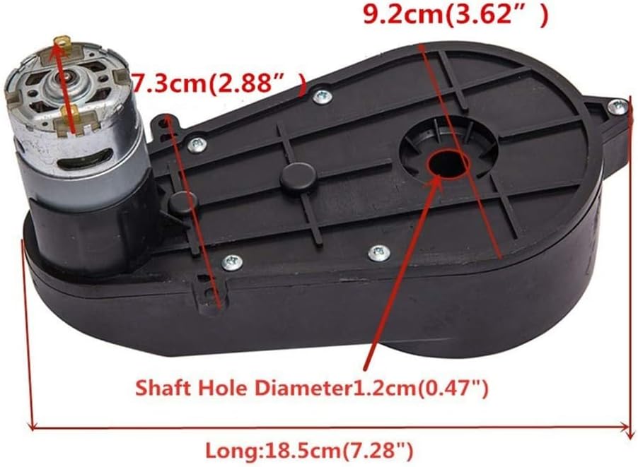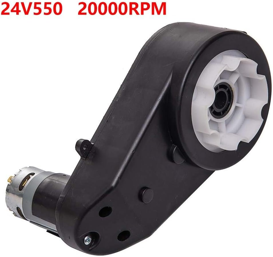 Motore CC da 24 V ad alta coppia: il cambio è dotato di un motore CC da 24 V ad alta coppia, che fornisce una forte potenza per le auto a bordo dei bambini. 【 e affidabile】Realizzato con materiali di alta qualità, il cambio è affidabile e garantisce prestazioni di lunga durata. Facile sostituzione: il cambio è facile da sostituire e adatto per auto per bambini. Viene fornito con connettori a cambio rapido che consentono una facile installazione e rimozione, senza la necessità di saldatura. Modello RS550 24 V 20000 giri/min: il cambio è progettato con un motore modello RS550 24 V 20000 giri/min, fornendo alta velocità per un'esperienza di guida emozionante. Compatibile con varie auto: per determinare se il cambio è compatibile con la tua auto, basta aprire il veicolo elettrico danneggiato e controllare il motore di trasmissione. Se il cambio sembra lo stesso, dovrebbe adattarsi perfettamente alla tua auto.